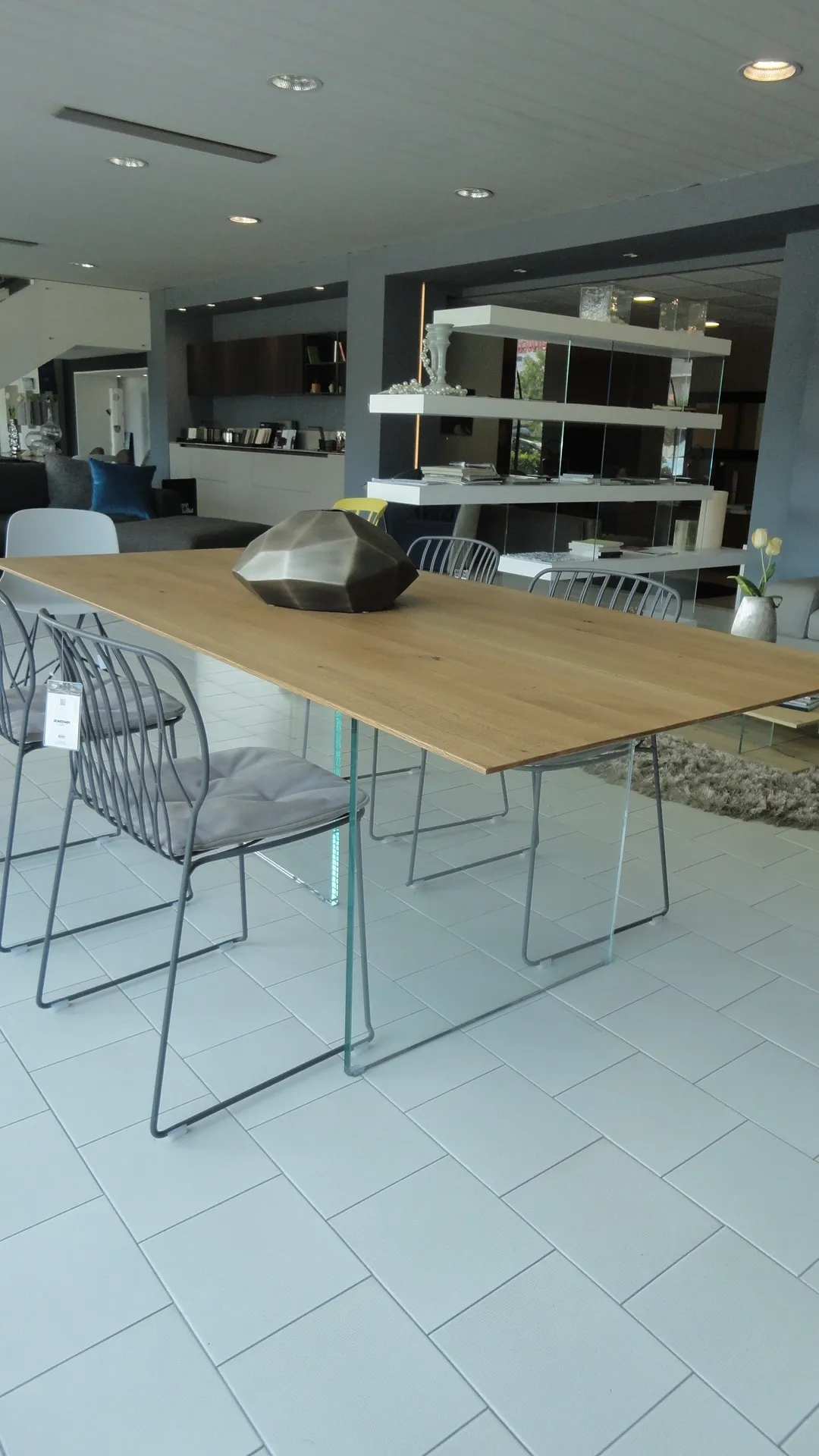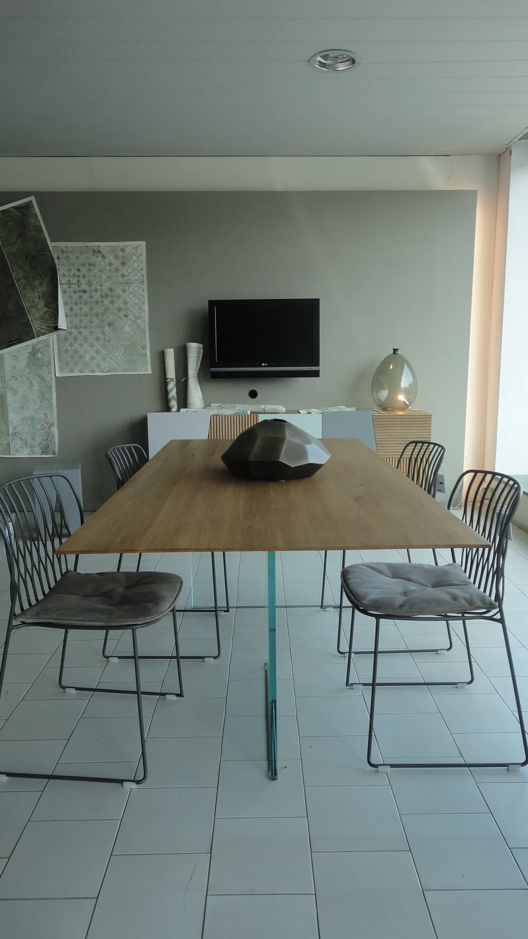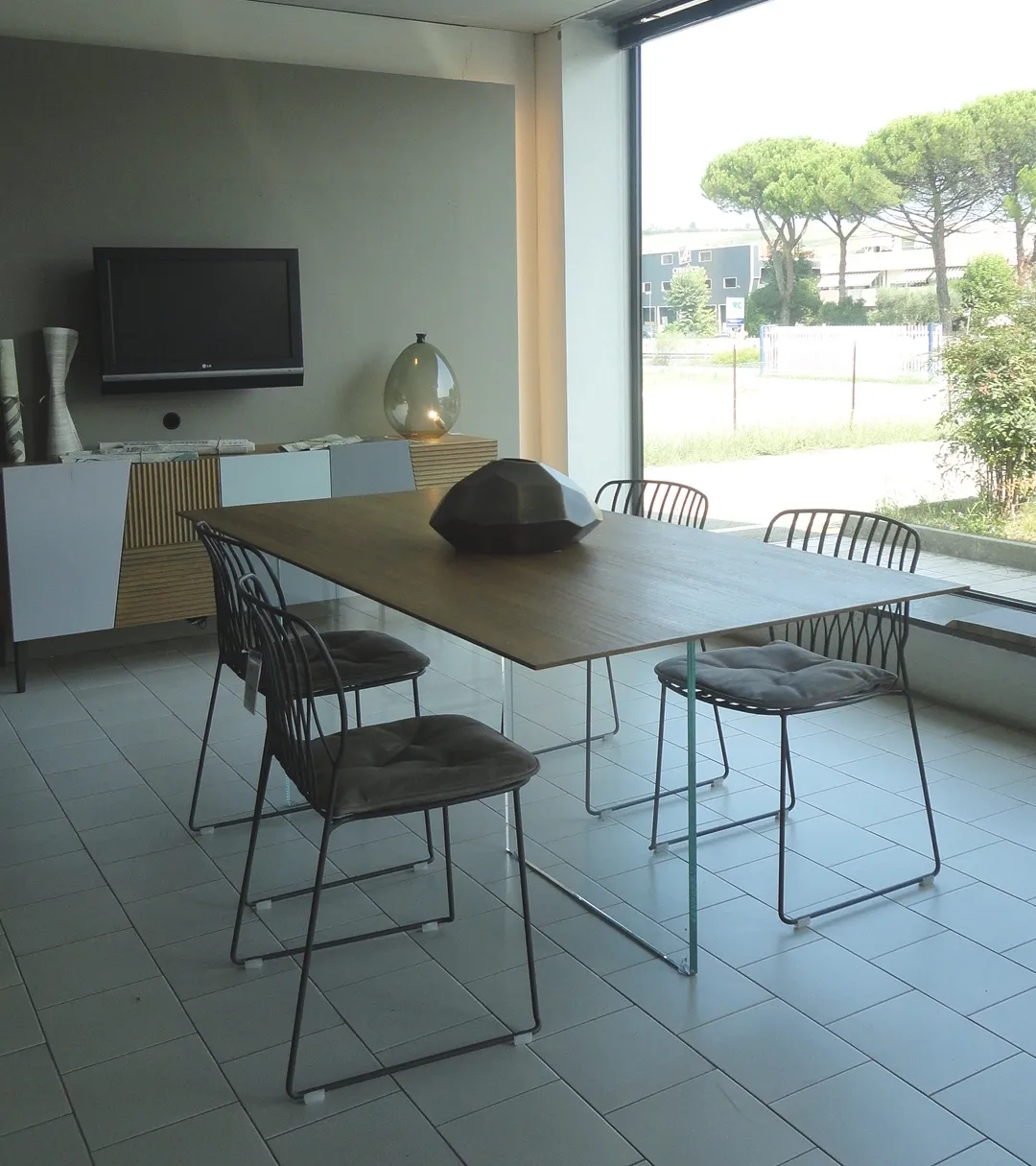 Tavolo collezione Eclettica modello Manhattan della ditta produttrice Devina Nais . Le dimensioni del tavolo sono : cm 200 di larghezza e cm 100 di profondità. Il piano è LEGNO MASSELLO finitura holand naturale Il basamento è in vetro trasparente Wall Il prezzo è comprensivo di iva. Trasporto e montaggio escluso - da considerare a parte .