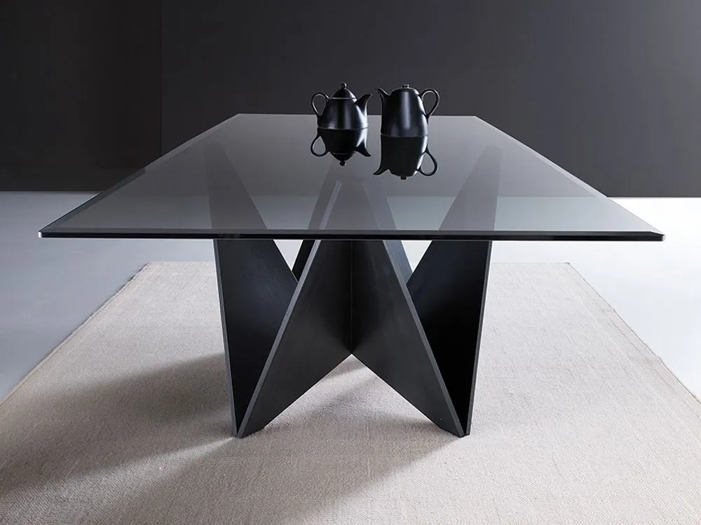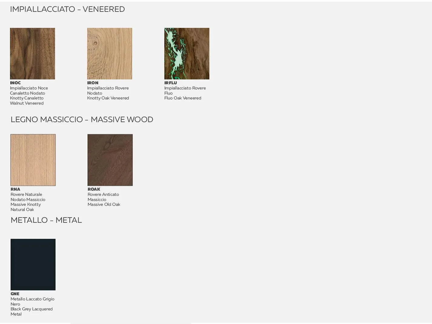 CARATTERISTICHE: - Piano in: Impiallacciato, Vetro Fumè Bisellato e in rovere massiccio (con maggiorazione di prezzo). - Struttura in: METALLO laccato Grigio Nero. - Materiale certificato