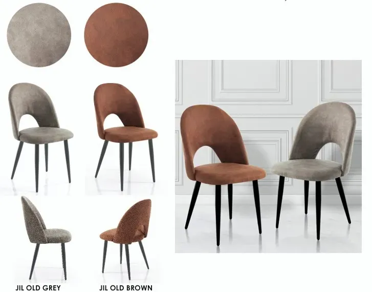 Disponibili in abbinamento anche le sedie imbottite JIL OLD, per un set coordinato e di grande stile.
