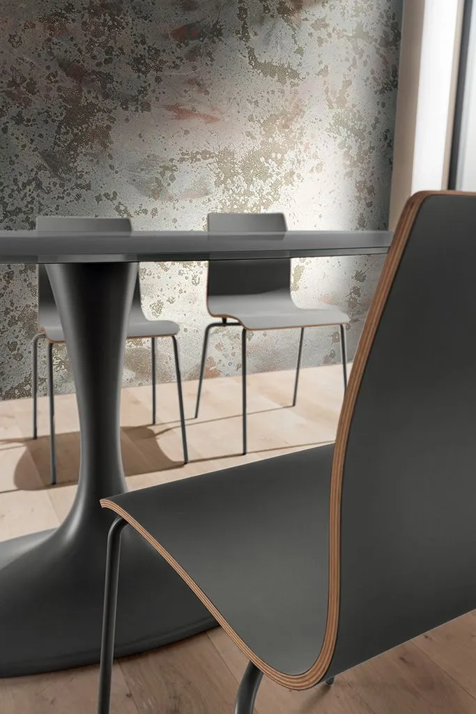 Il tavolo Ruud ha uno stile moderno e minimal, con linee pulite e materiali contemporanei come il Fenix NTM e il marmo sintetico. Si adatta perfettamente ad ambienti di design.