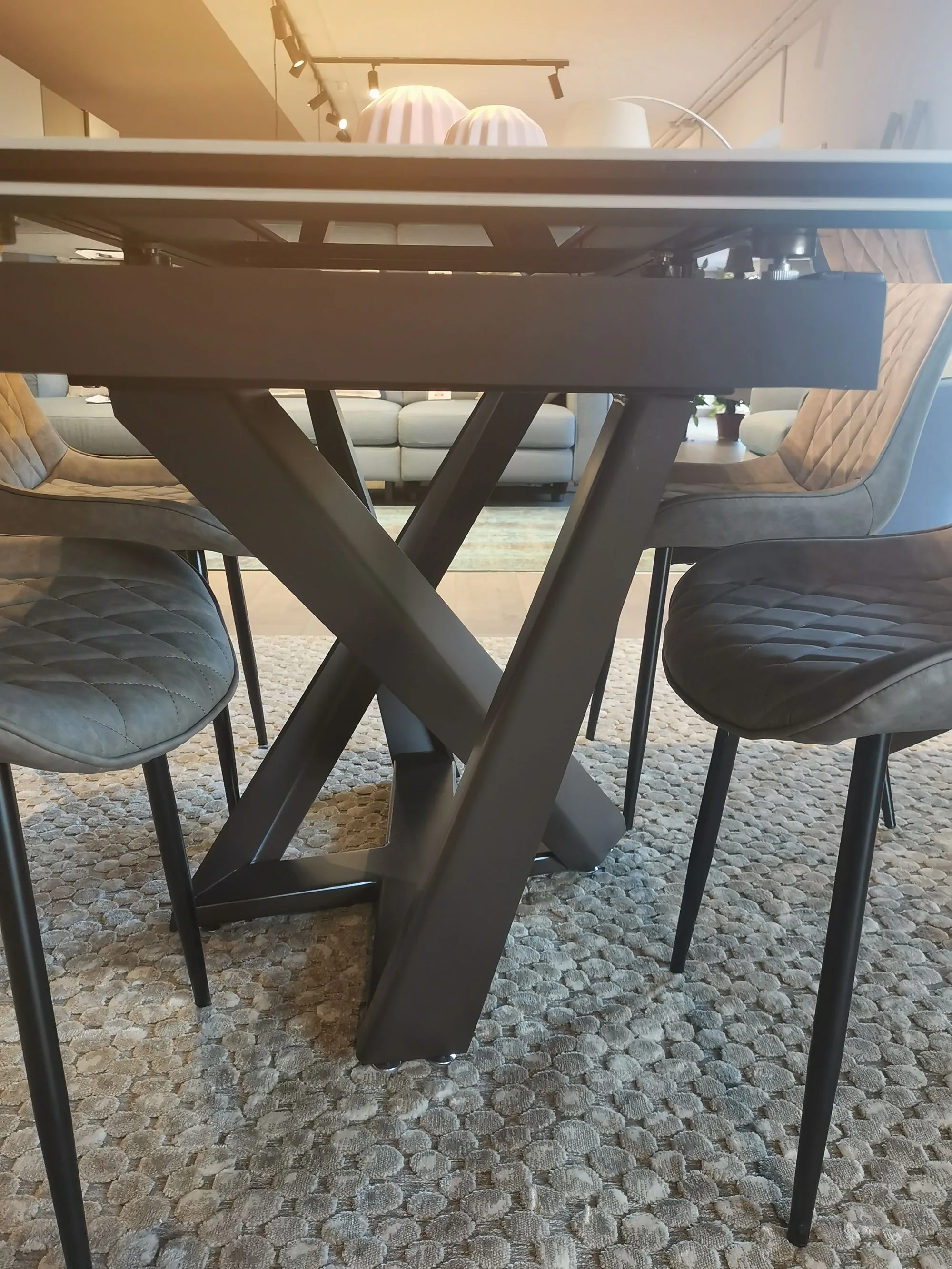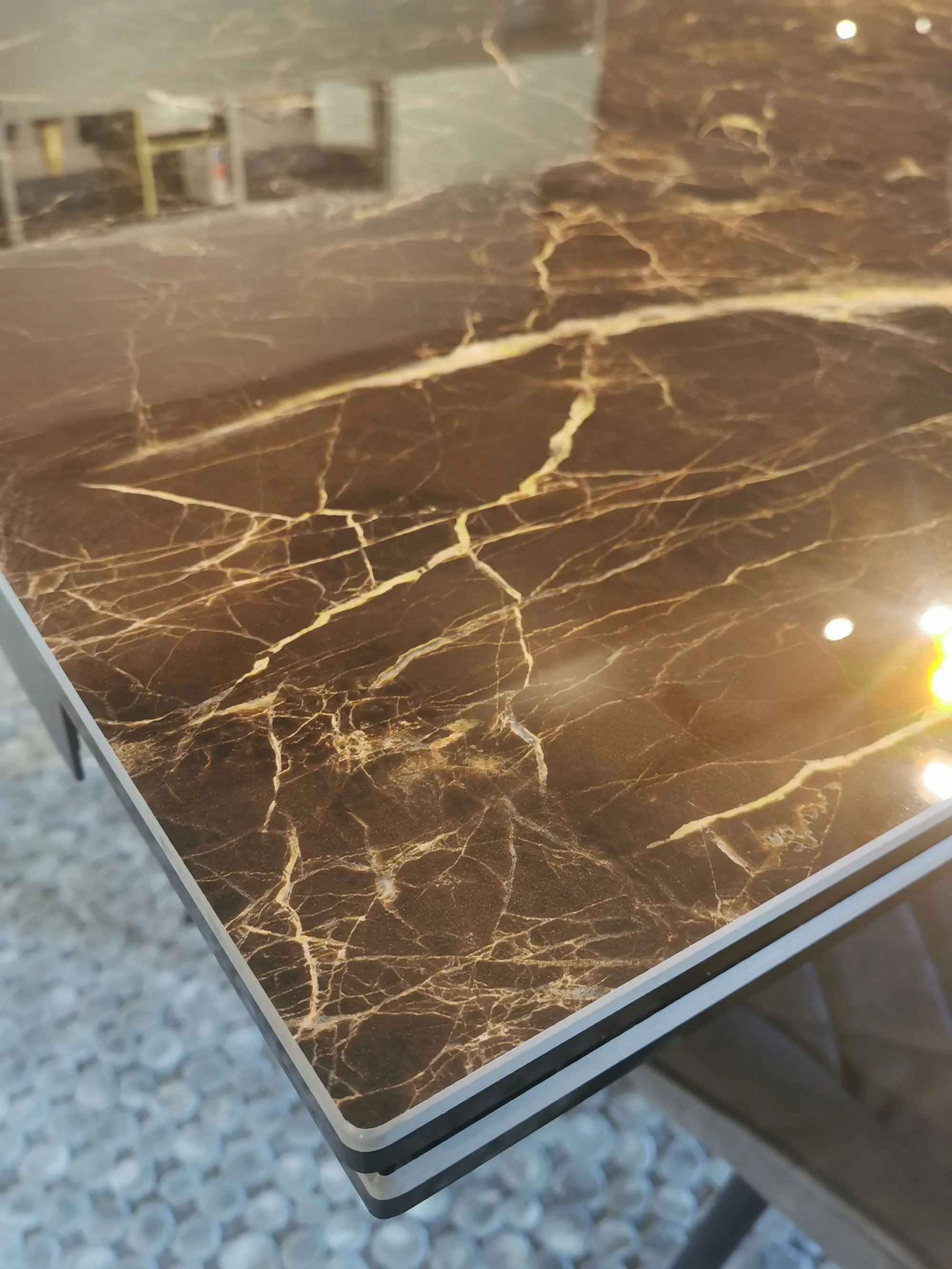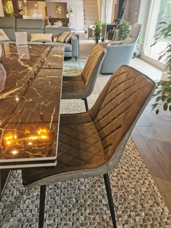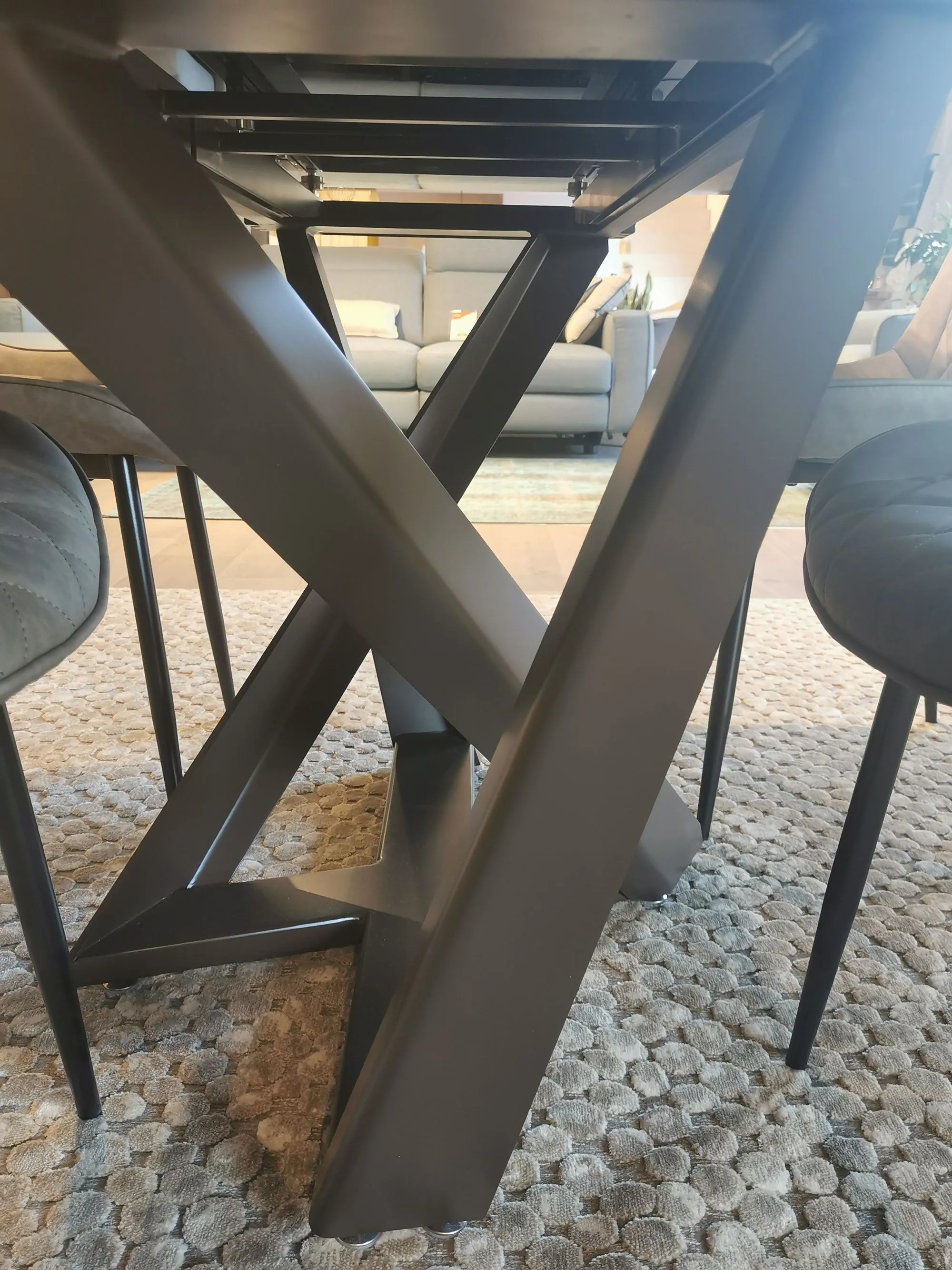 In linea con le tendenze del mercato, PRIAMO è un tavolo moderno allungabile disponibile con classica finitura di gres porcellanato Grafite e con nuove ed eleganti finiture di gres porcellanato con effetto marmo, caratterizzate da toni che spaziano dai caldi avvolgenti del marmo Emperador fino ai freddi dei marmo Carrara e Arabescato.