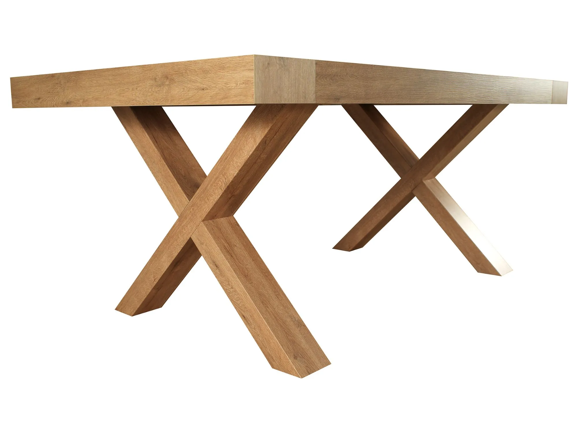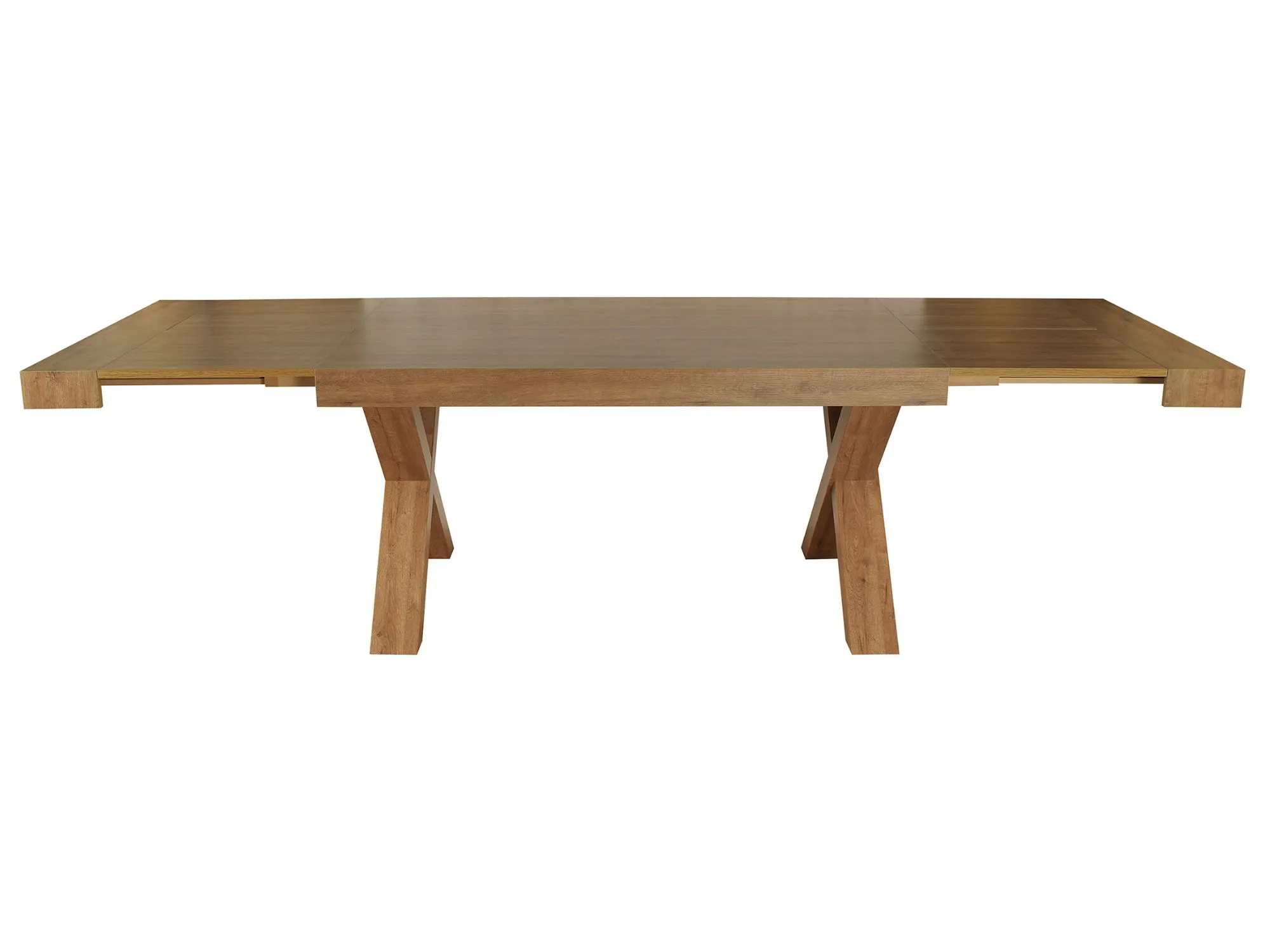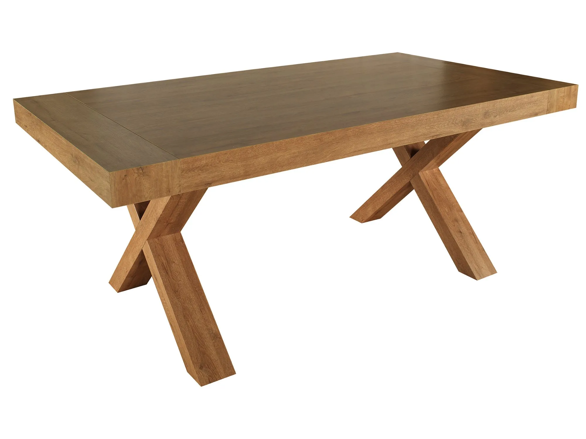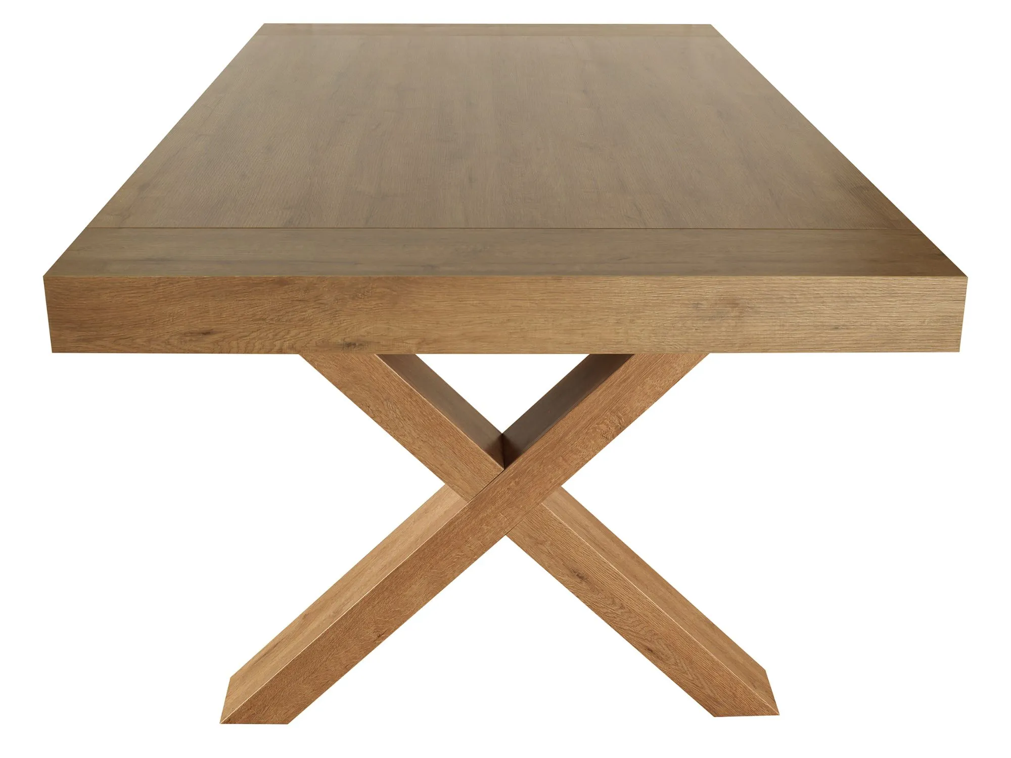 Il tavolo MobiLike allungabile in nobilitato rovere consumato con gambe ad X è un eccellente pezzo di design in stile nordico contemporaneo, adatto ad ambienti moderni come quelli dal sapore retrò.