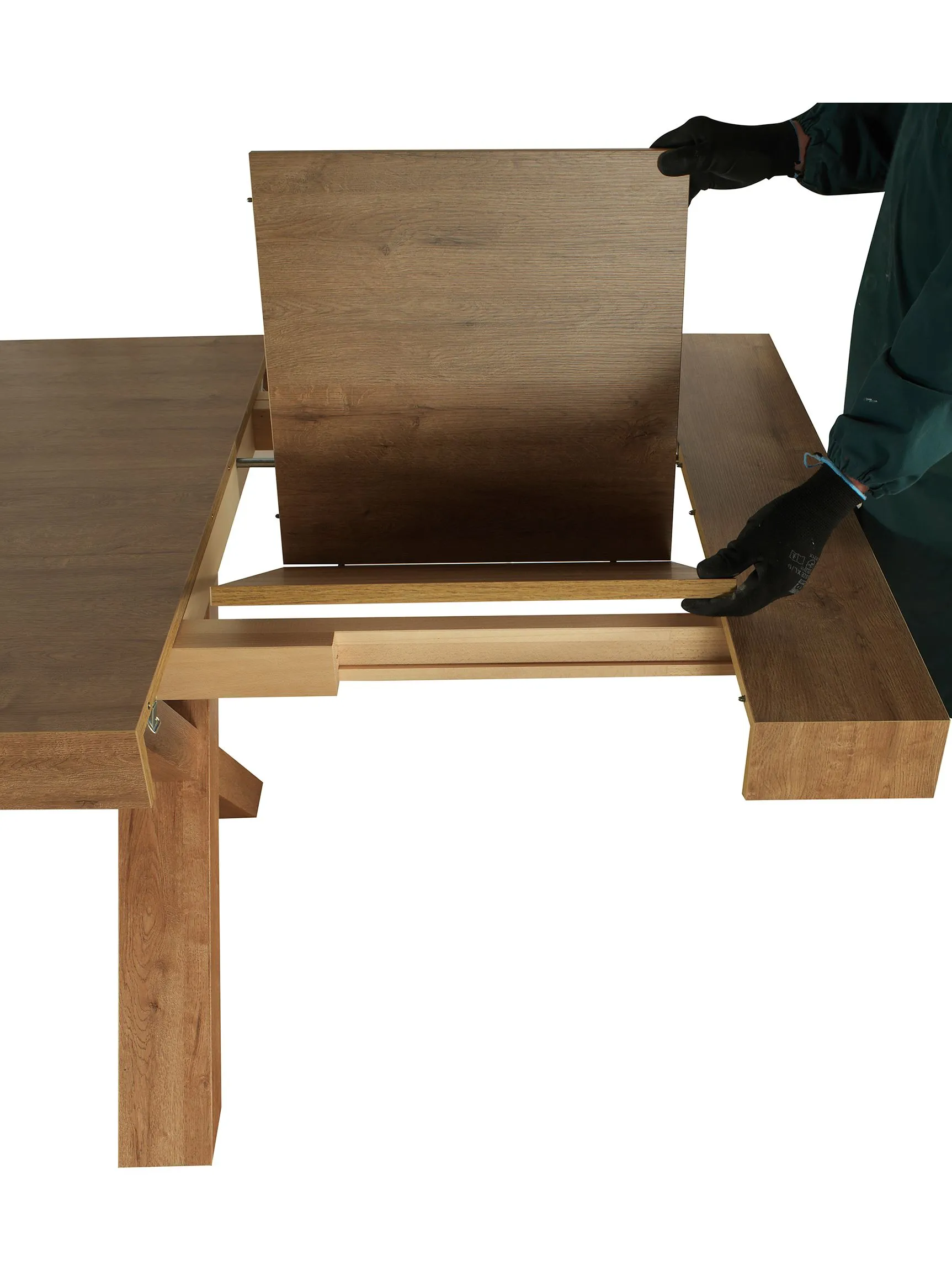 Inserite all'interno dello stesso, il tavolo è dotato di due allunghe da 50 cm per un'apertura pratica e veloce.
