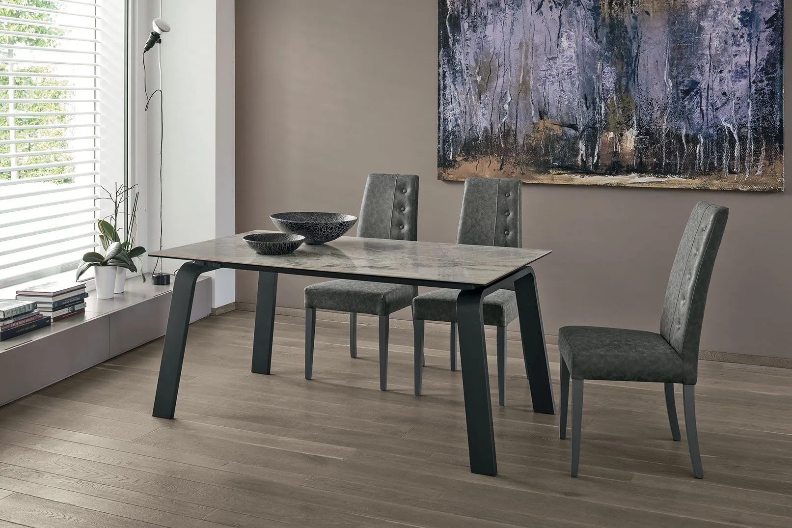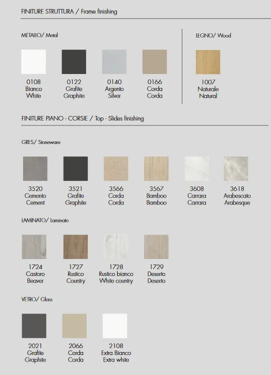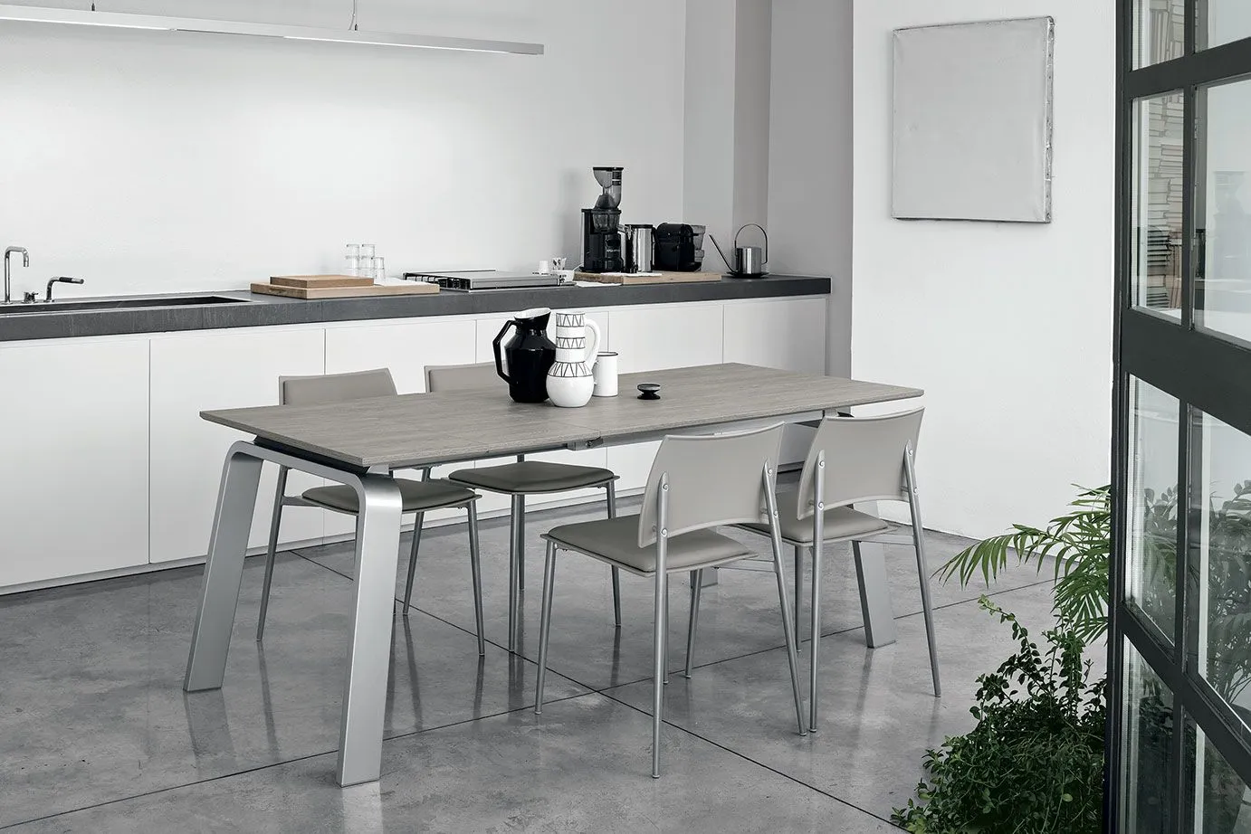 Tavolo Deimos allungabile in alluminio con gamba in metallo verniciato piano in gres porcellanato o vetro temperato o laminato ed allunghe laterali in MDF laccato in tinta con il piano o con la struttura. Le misure del tavolo sono le seguenti L 160 all 240 x P 90 x H 75 cm.