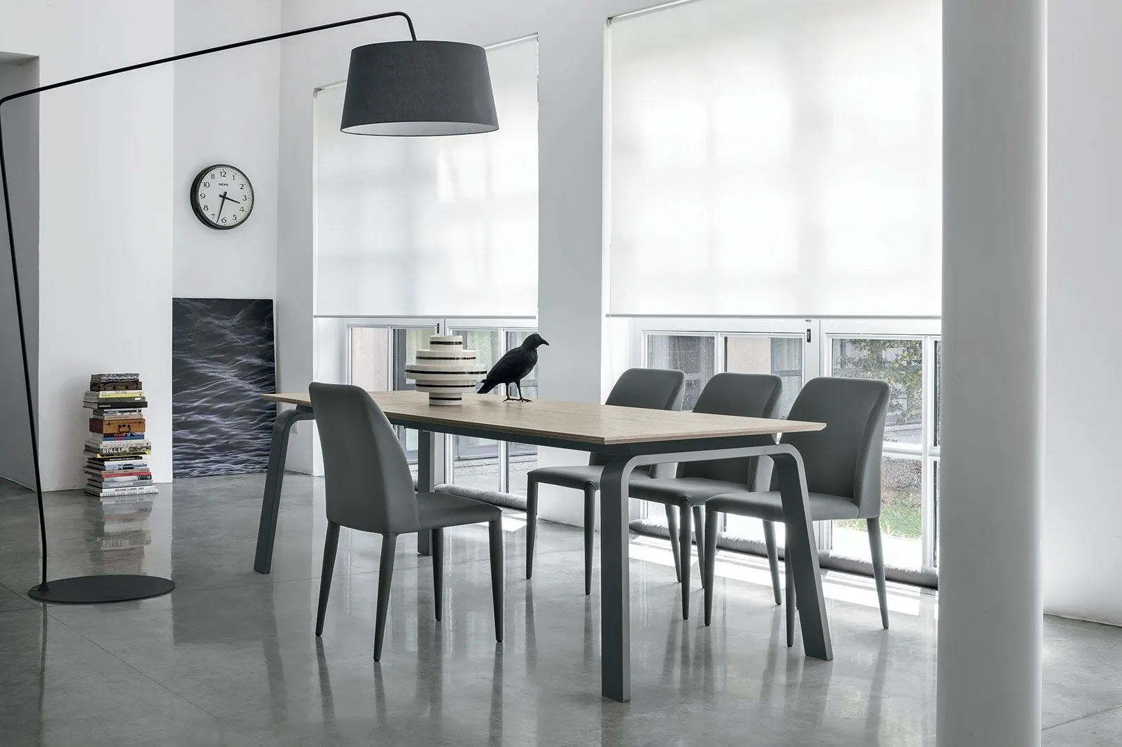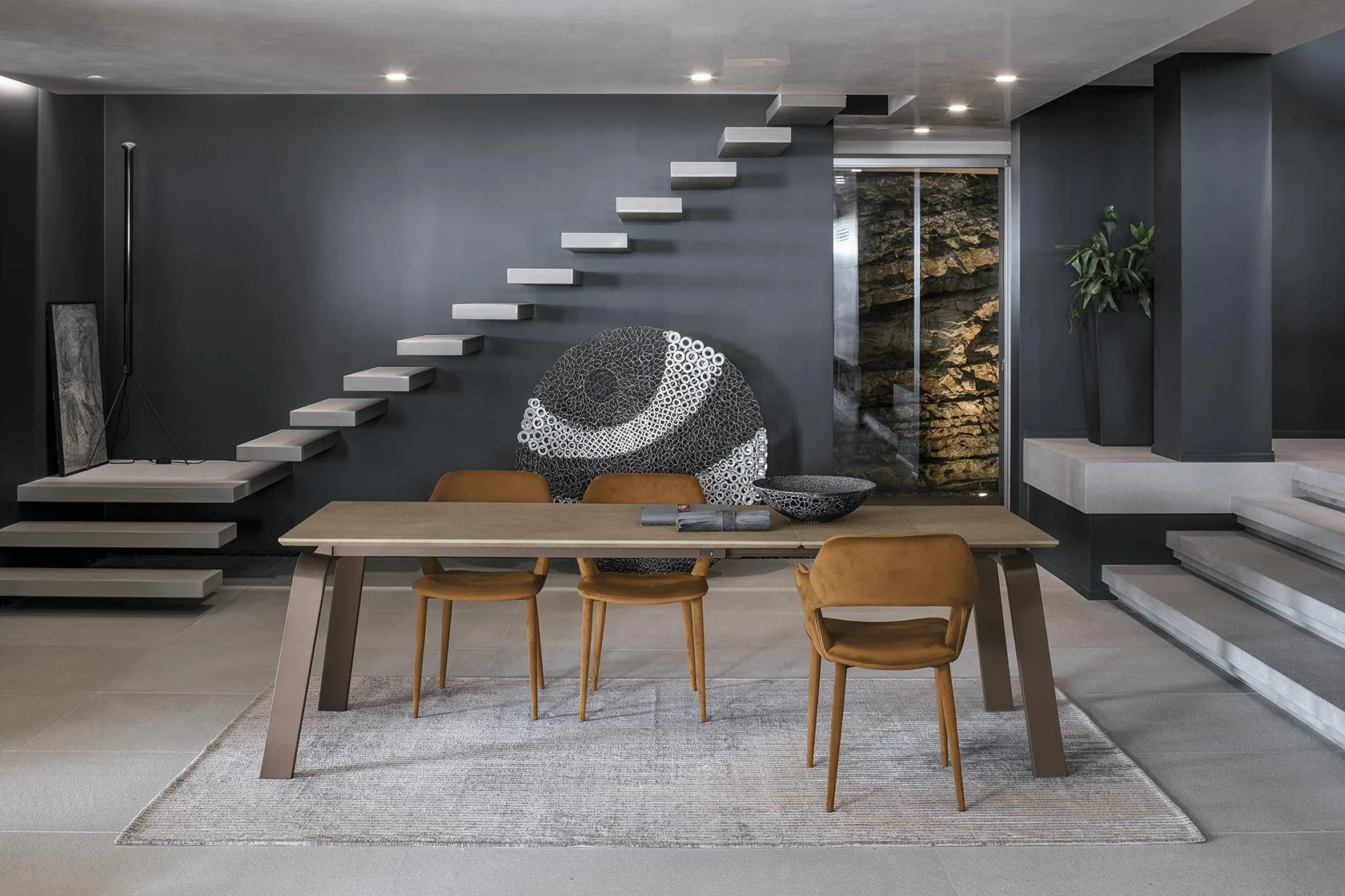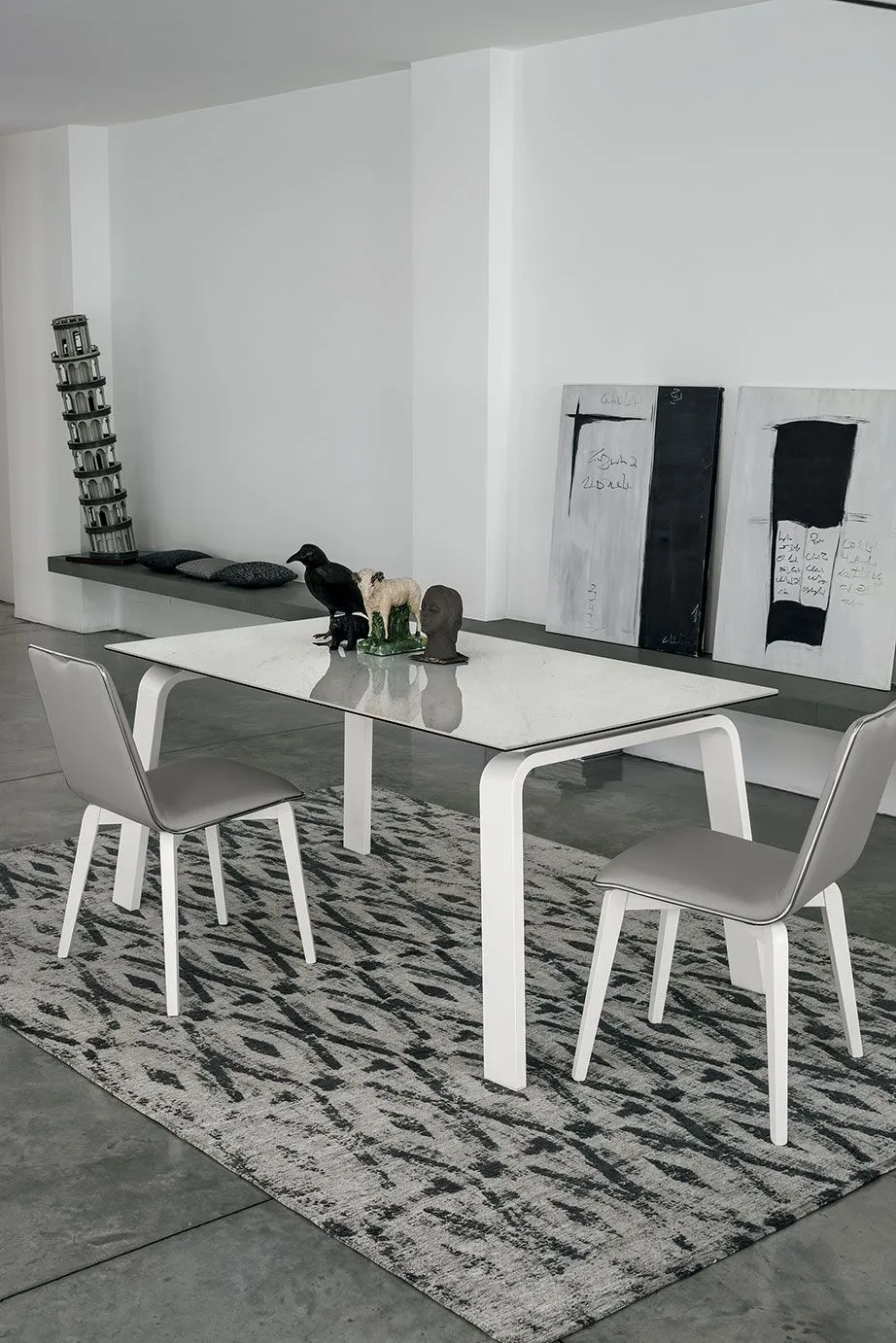 Tavolo Deimos allungabile in alluminio con gamba in metallo verniciato piano in gres porcellanato o vetro temperato o laminato ed allunghe laterali in MDF laccato in tinta con il piano o con la struttura. Le misure del tavolo sono le seguenti L 160 all 240 x P 90 x H 75 cm.