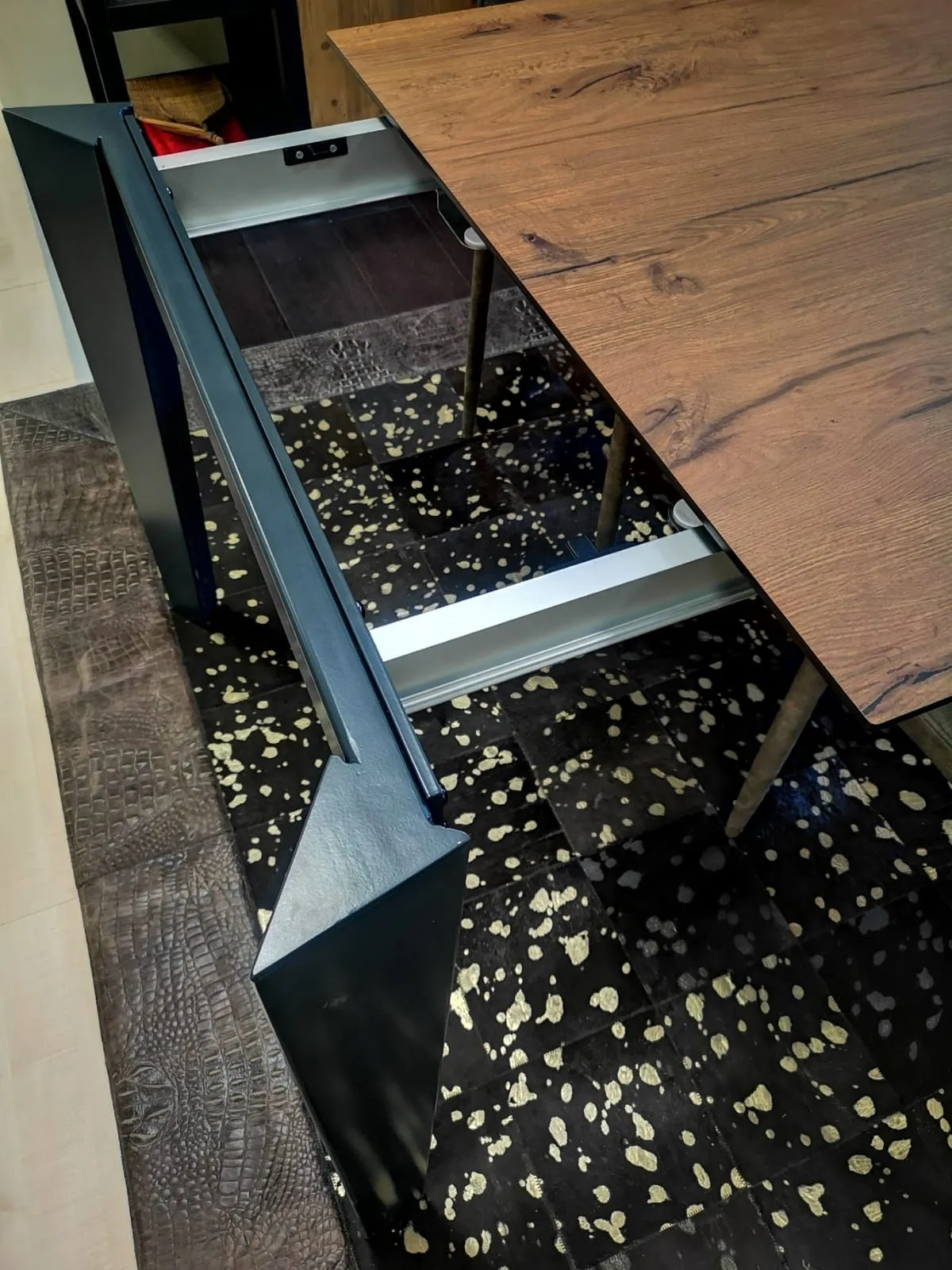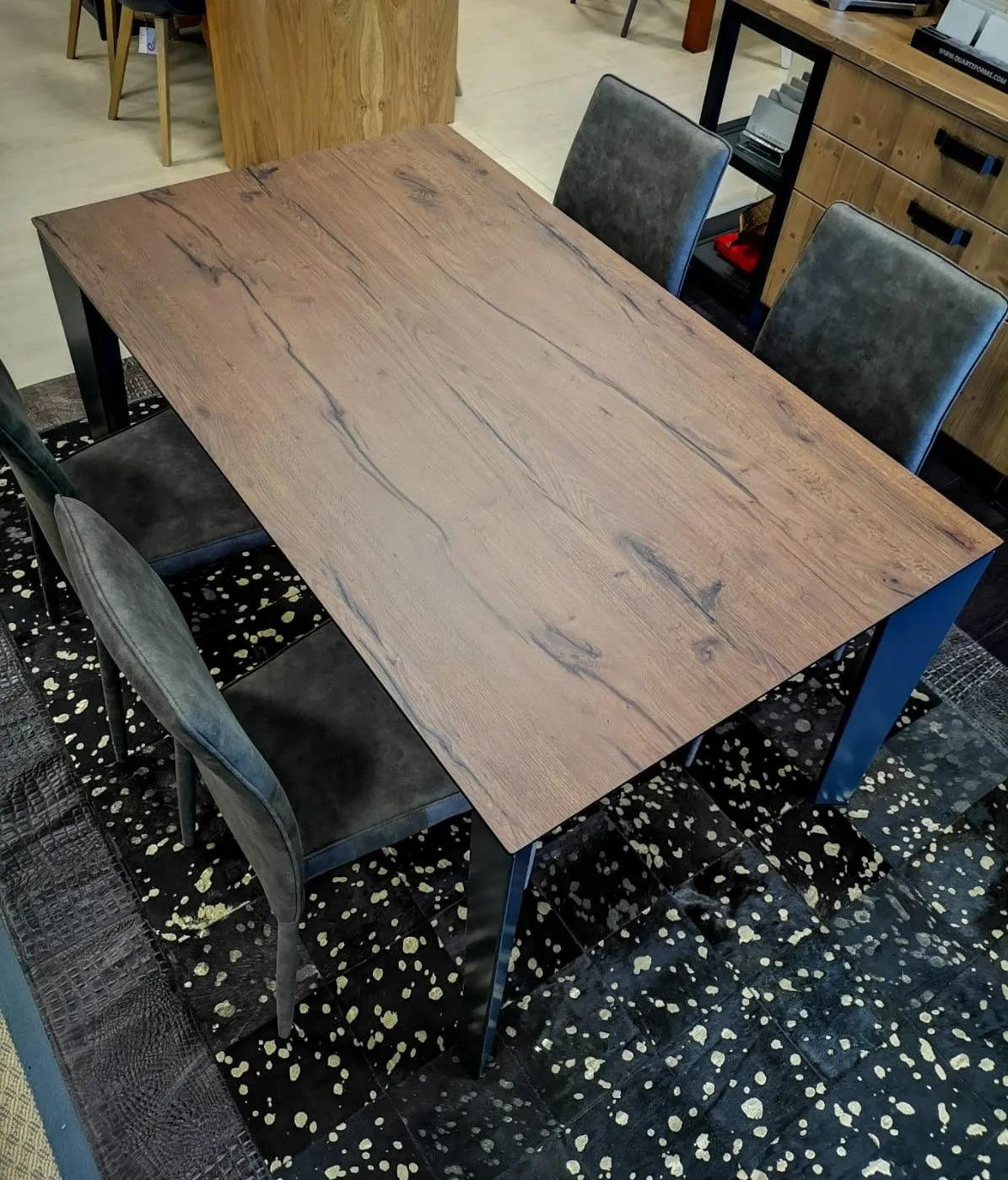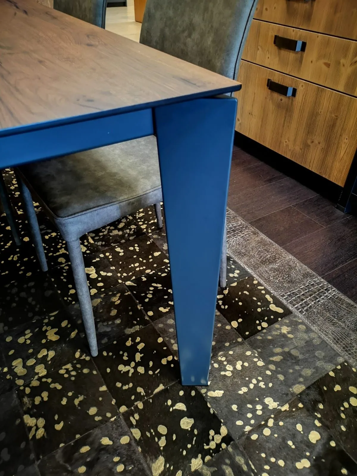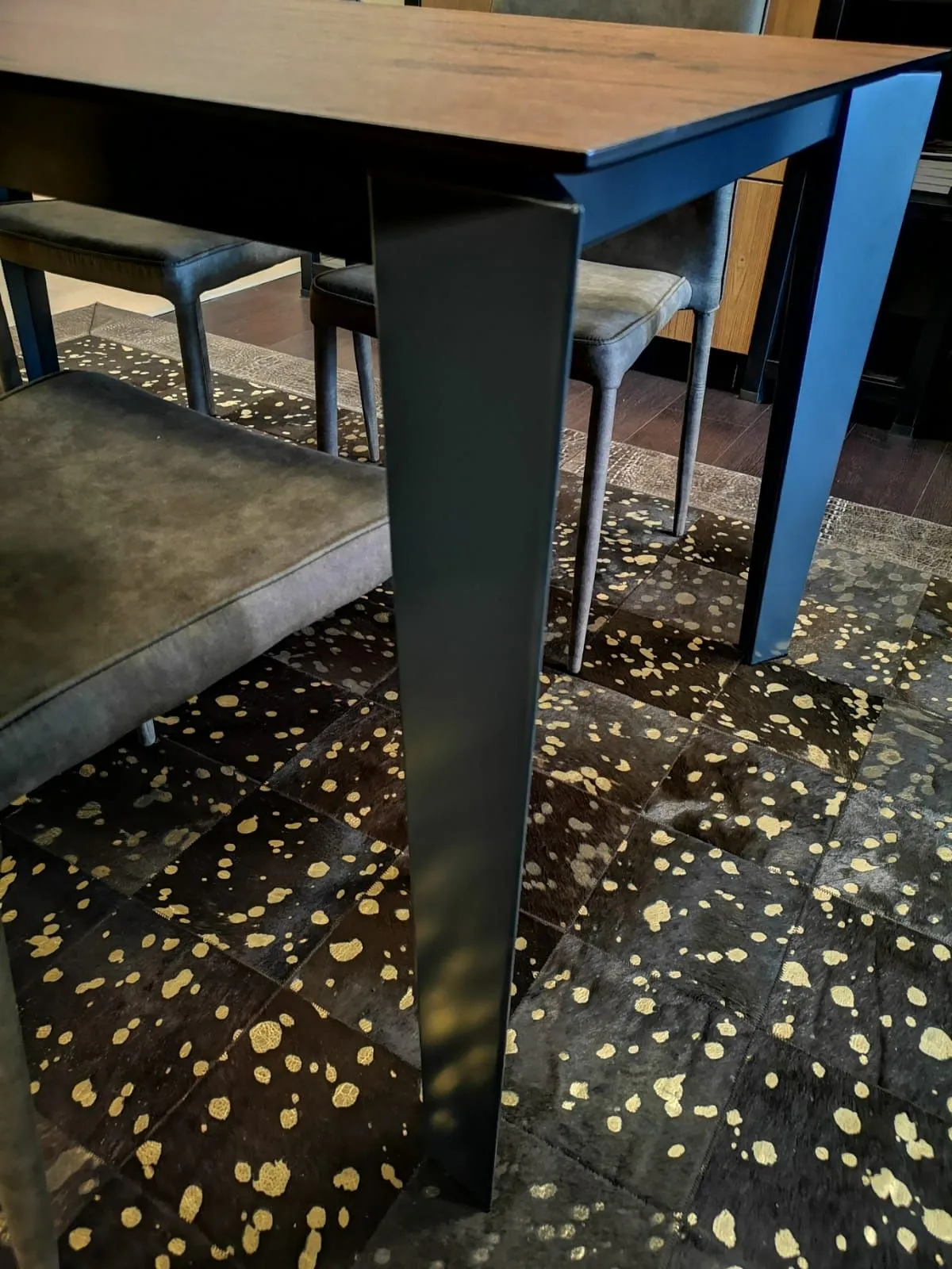 Tavolo allungabile modello Kiew di Gipi sedie. Tavolo allungabile lateralmente con gambe metallo a ponte. Metallo colore grigio ardesia verniciato a polvere epossidica e smalti materici. Sistema di allungamento telescopico completamente in alluminio anodizzato. Dimensioni 150x90 allungabile fino a 300 cm. Allunghe alloggiabili all'interno del tavolo. Piano in laminato Rovere invecchiato. Prodotto esposto presso il nostro showroom. Trasporto e montaggio sono compresi nel raggio di 15 km dal nostro negozio di Rovolon (Pd) Per distanze superiori o per qualsiasi altra informazione , compilare il form sottostante.