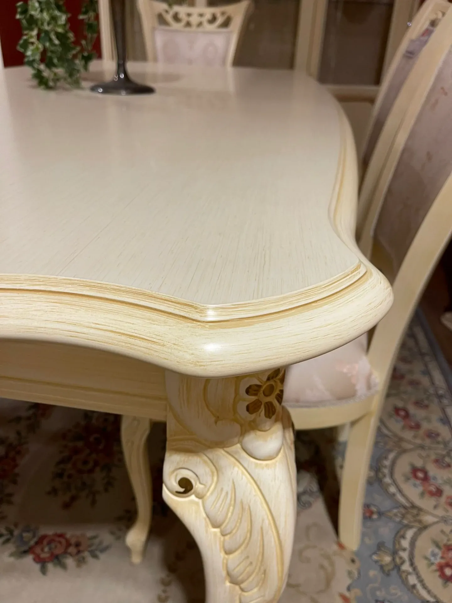 TAV REGINA PAT_TAVOLO MOD.REGINA PATINATA RETT.FISSO L.202 P.104 H.79 FINITURA CON DECORO ORO STANDARD