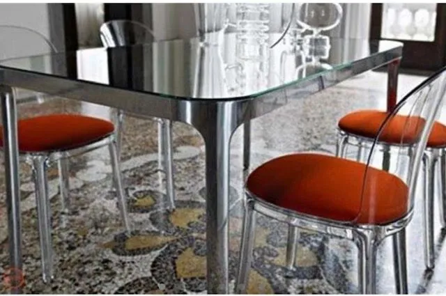 FUORI TUTTO PREZZI ECCEZIONALI Splendido mix di materiali per questo tavolo Vanity disegnato dal maestro del design italiano Stefano Giovannoni. Il piano in vetro temprato (10 mm) è abbinato a un telaio in ghisa d'alluminio. Una magnifica finitura monocroma: la quintessenza dello stile! Sofisticatissimo, il piano in vetro lucido gioca con i riflessi e la luce... le linee sono morbide e pure, gli angoli arrotondati. Elegante, il tavolo Vanity si integra bene sia in interni moderni, sia in quelli più classici, in cucina e persino in ufficio. Disponibile in versione rettangolare ( 180 x 90 cm) colore argento.Questo tavolo si abbina alla perfezione alle sedie Vanity.
