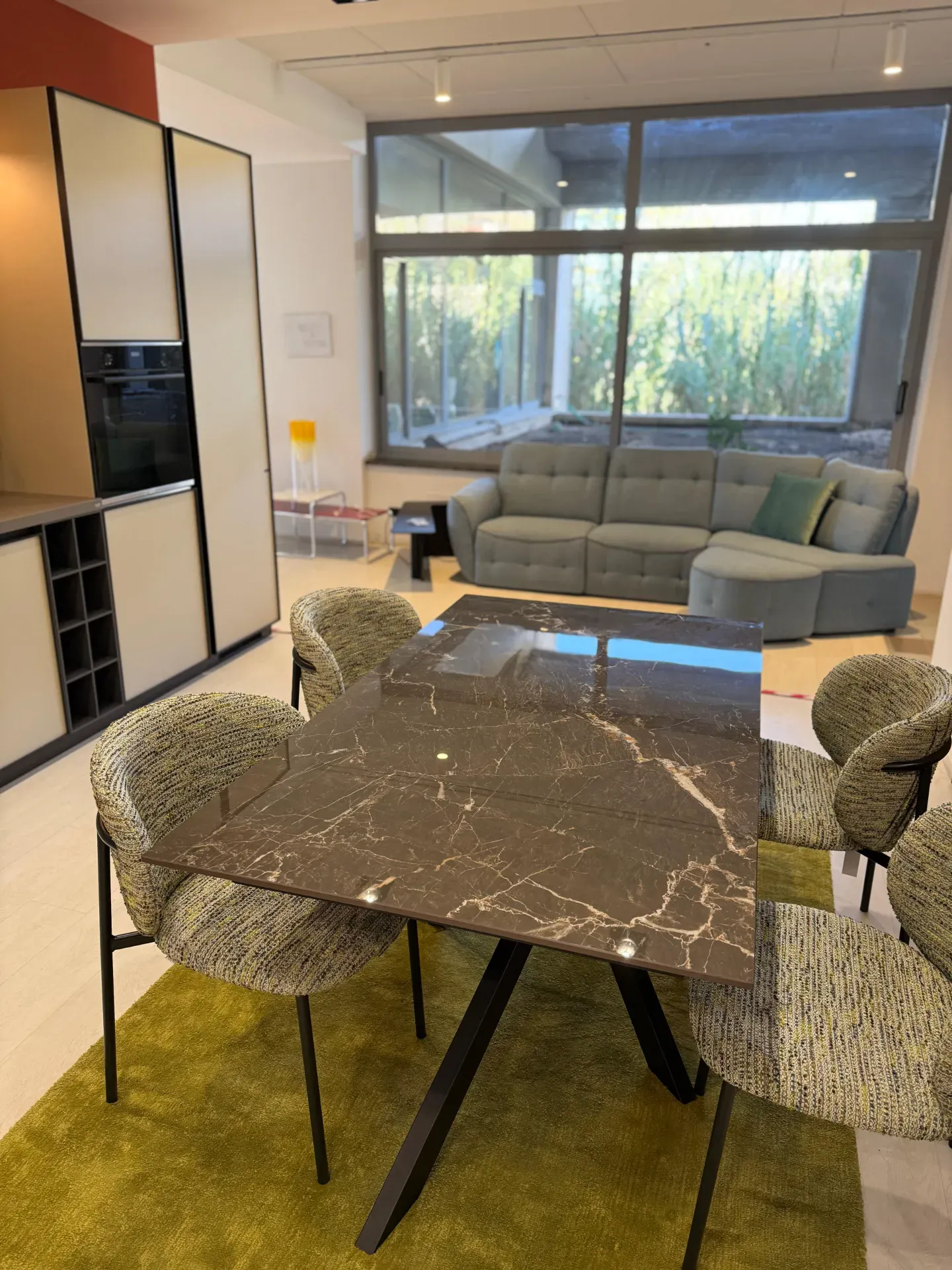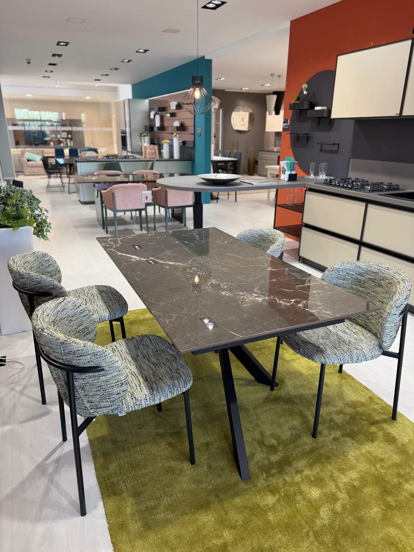 Tavolo rettangolare Manhattan di Scavolini struttura in metallo verniciato, piano allungabile in gres, design elegante e funzionale. Offerta outlet.