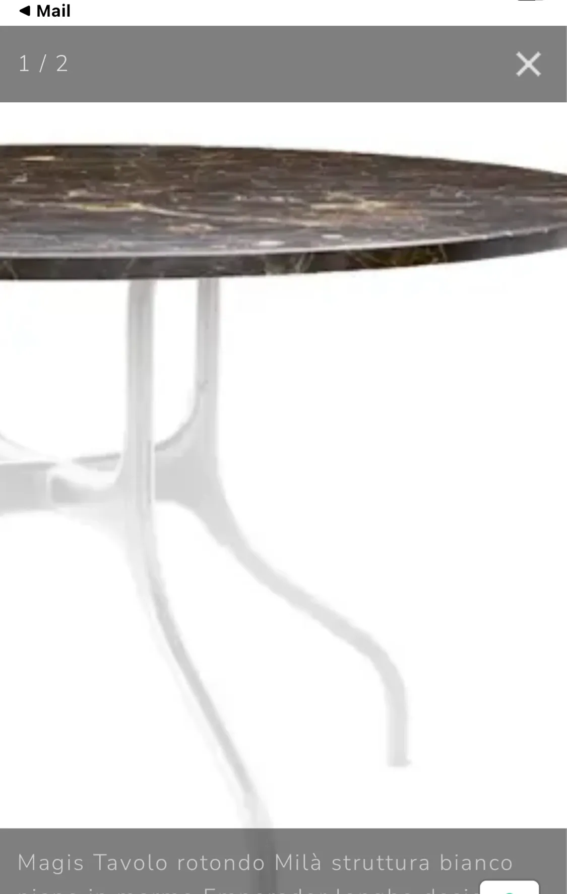 Magis Tavolo rotondo Milà struttura piano in marmo Emperador; Materiali: struttura in tubo di acciaio verniciato poliestere. Giunto in pressofusione di alluminio verniciato poliestere. Piano in impiallacciato rovere naturale o tinto nero, in marmo di Carrara, Marquinia o Emperador.