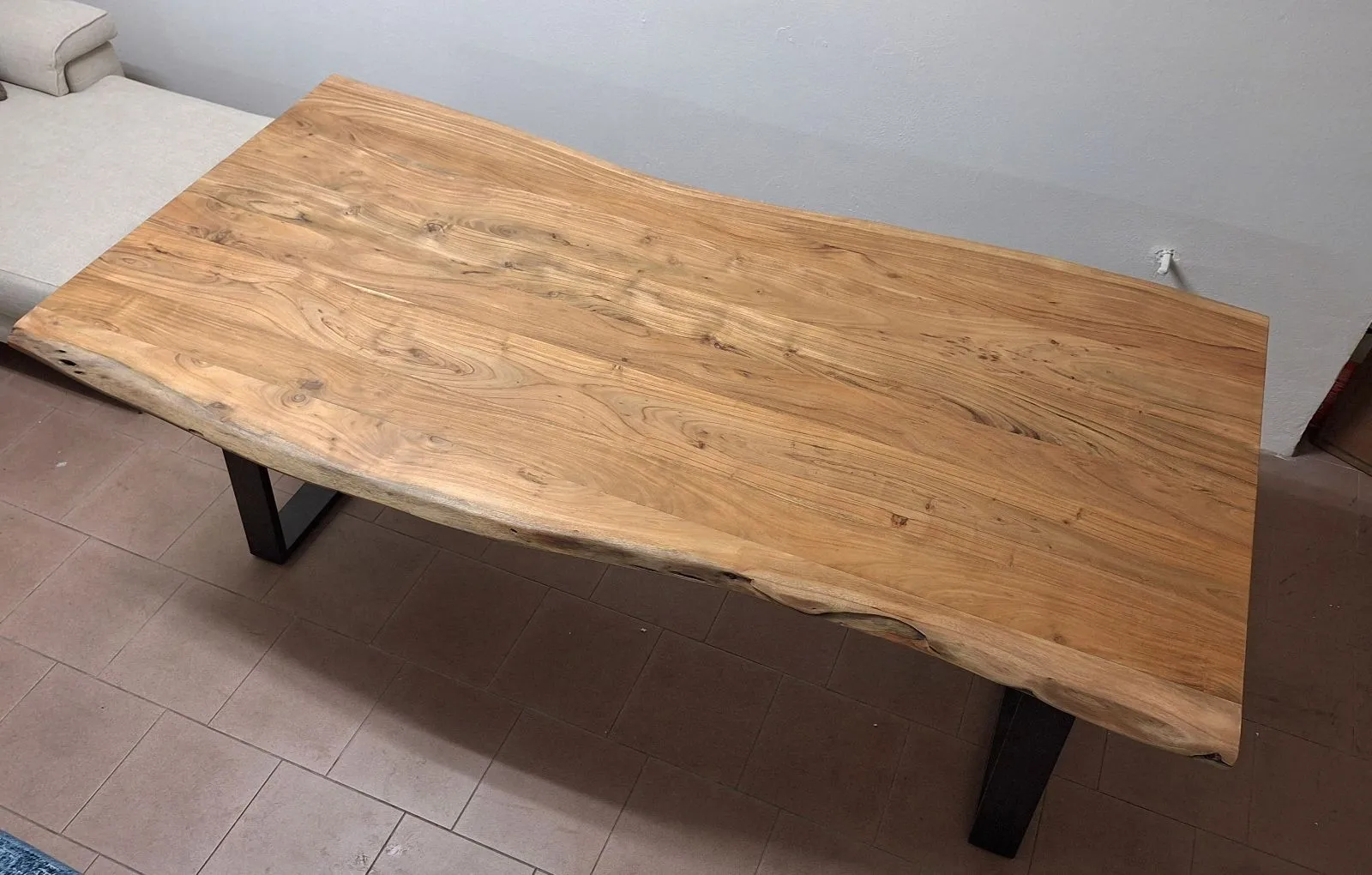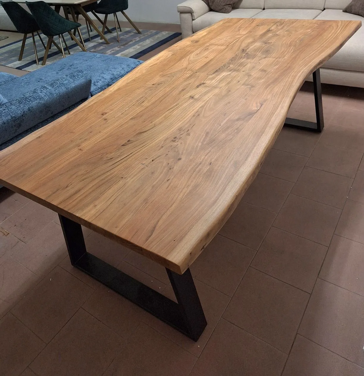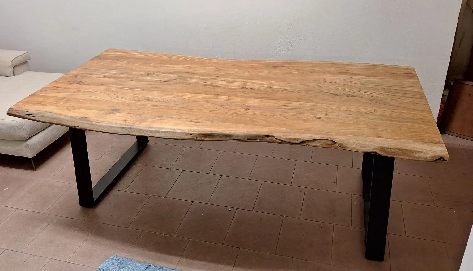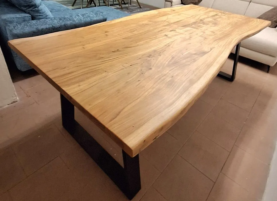 Vendo per rinnovo mostra stupendo tavolo artigianale fisso in legno di acacia finitura naturale con struttura in metallo nero, misura 210x 105. il suo piano sagomato lo rende molto elegante e unico nel suo genere. Possibilità di spedizione in tutta Italia con preventivo a costi contenuti. Per altre informazioni non esitate a contattarmi. Davide 340 9214193
