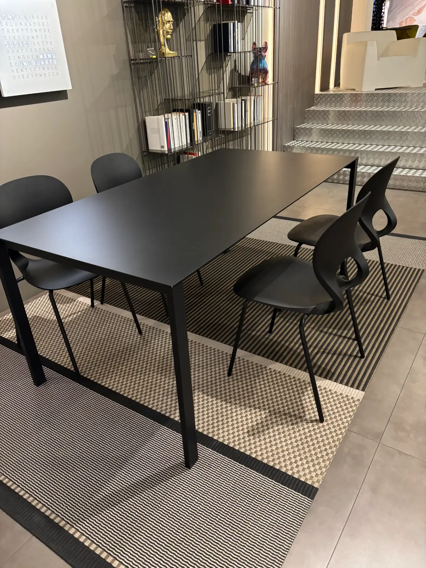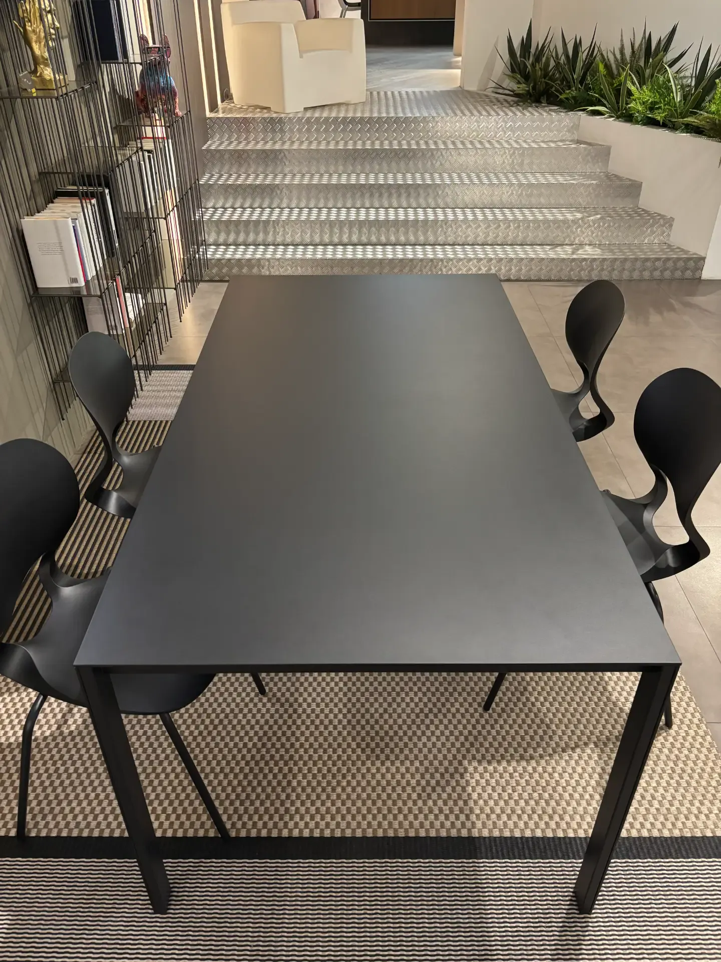 TAVOLO THIN-K ALLUNGABILE 170X90X75 PIANO ALLIMINIO VERNICIATO NERO CON ALLUNGHE IN TINTA