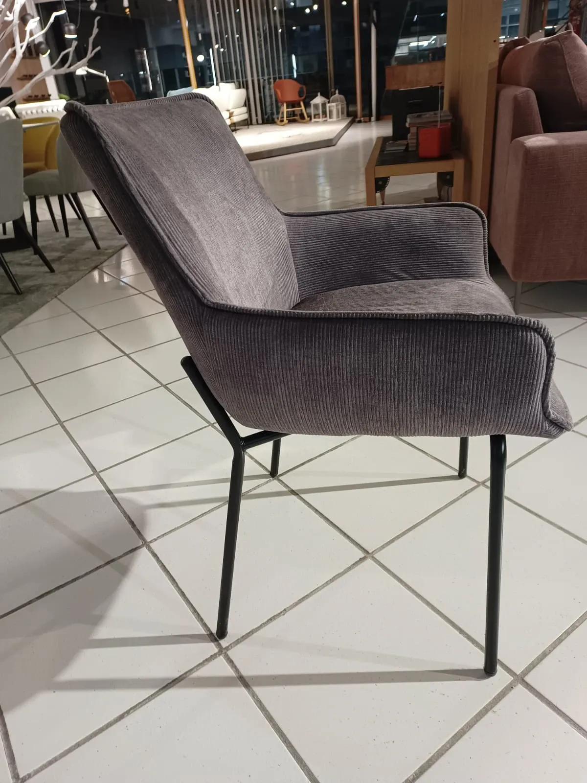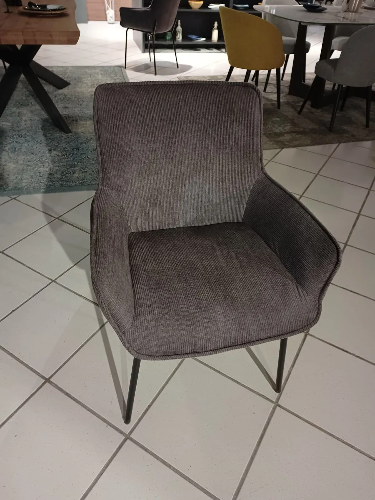 Prezzo speciale per le 4 sedie abbinate mod. Losanna in tessuto Grigio fumo, basamento metallo nero