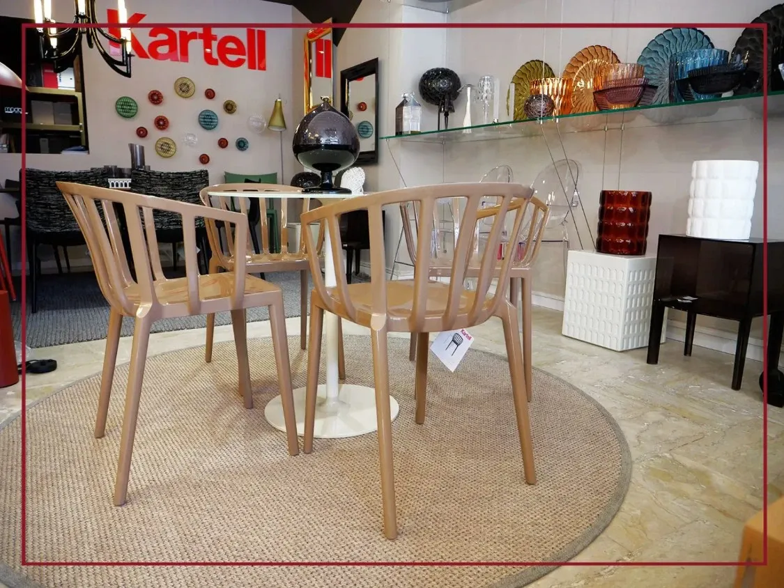 Linee ben studiate ed un risultato estetico di gran classe caratterizzano la struttura con basamento centrale del tavolo qui presente: nel complesso, il valore estetico del modello Thierry bistrot Kartell non ti deluderà.