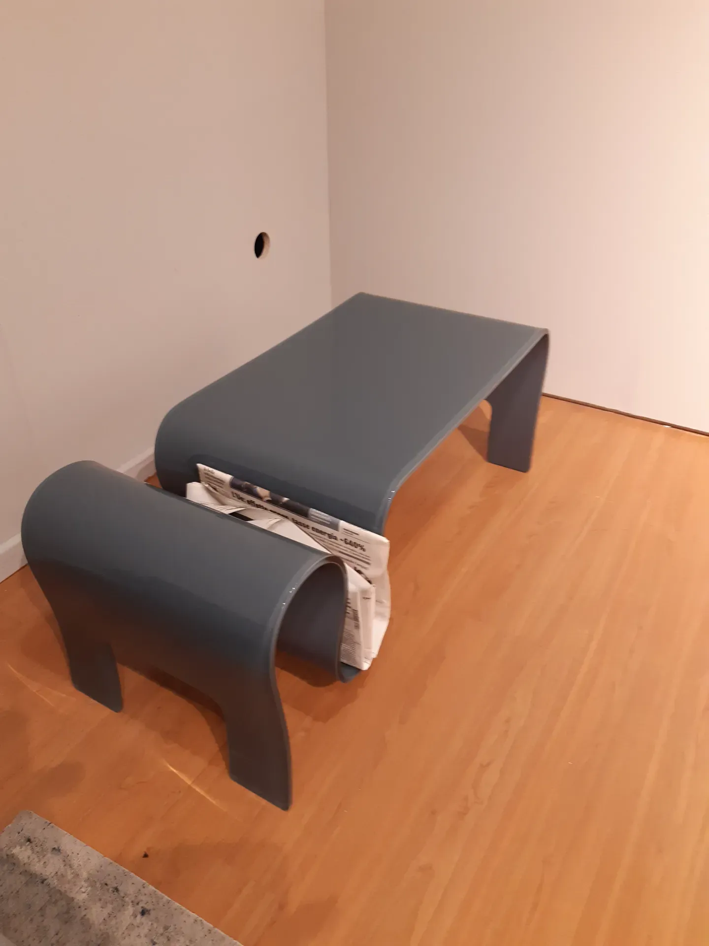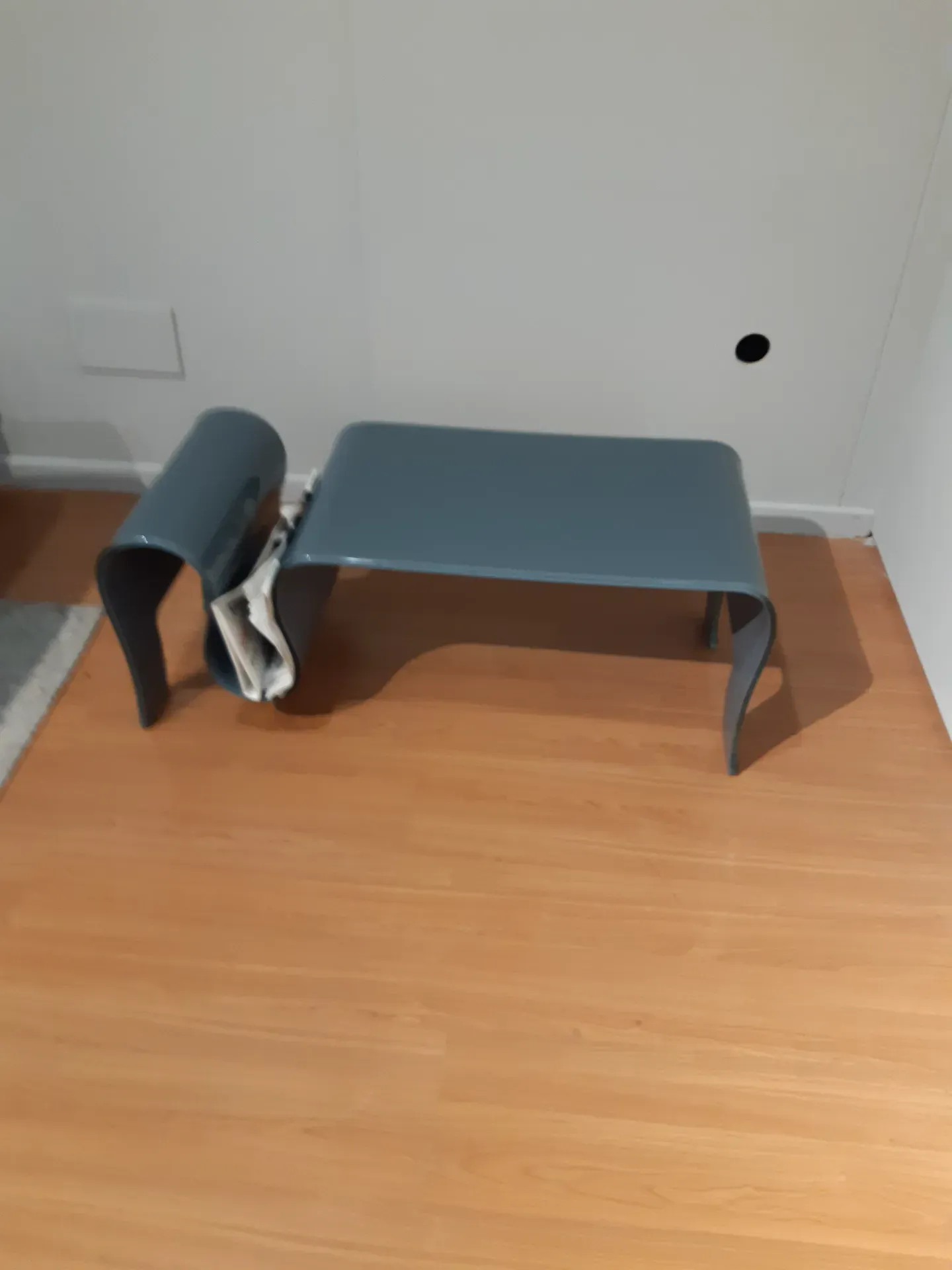 Tavolino da salotto realizzato in vetro curvato spessore 10 mm retroverniciato lucido colore grigio.