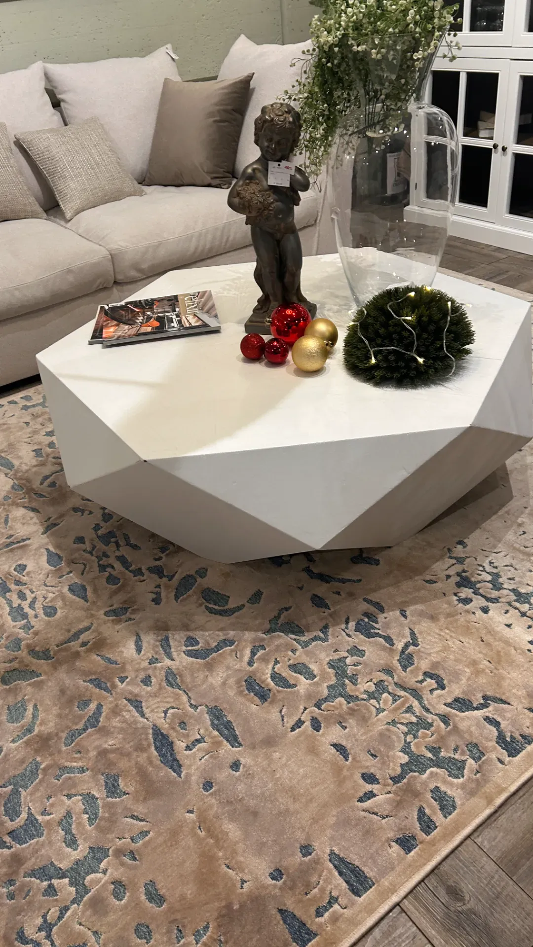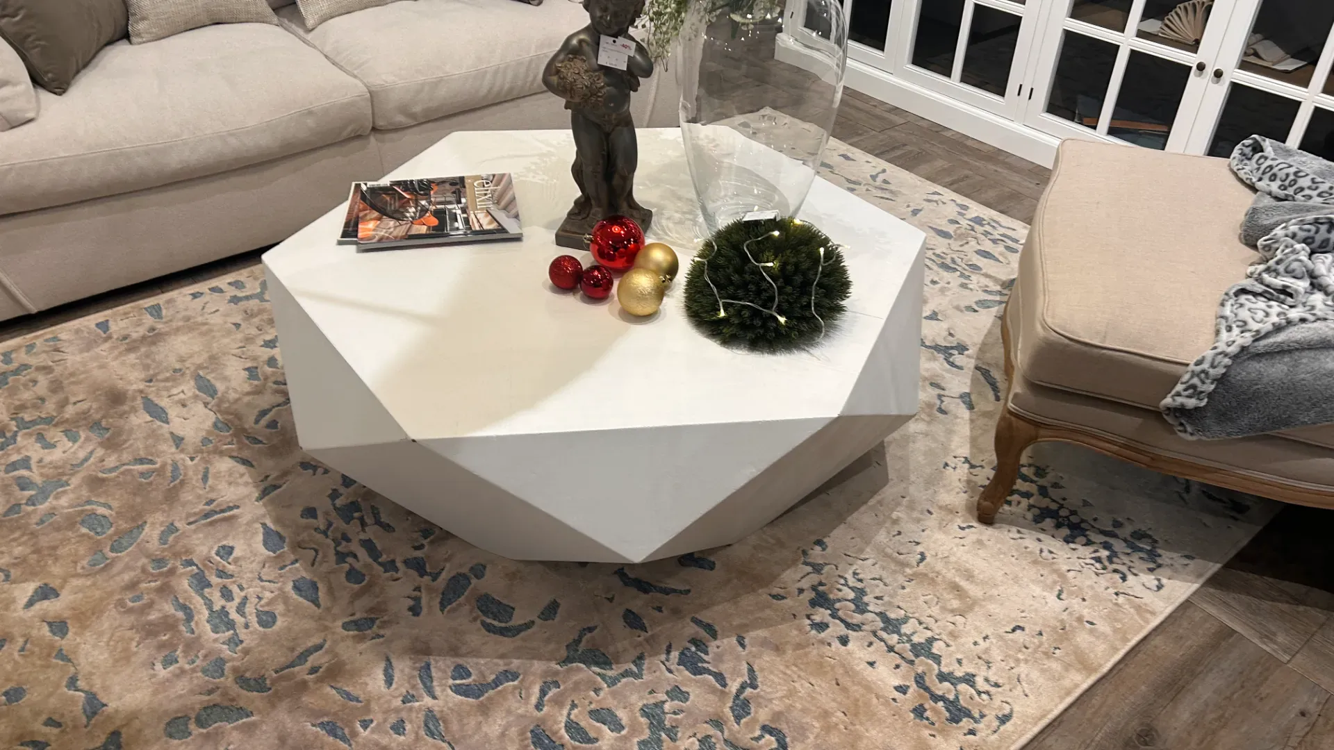 Tavolino forma esagonale laccato bianco cm 122 p 107 h 39