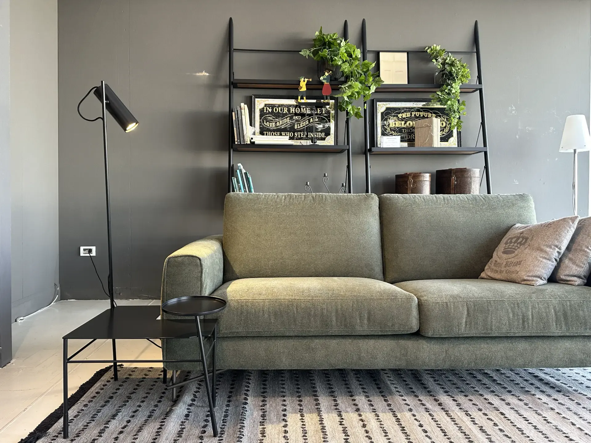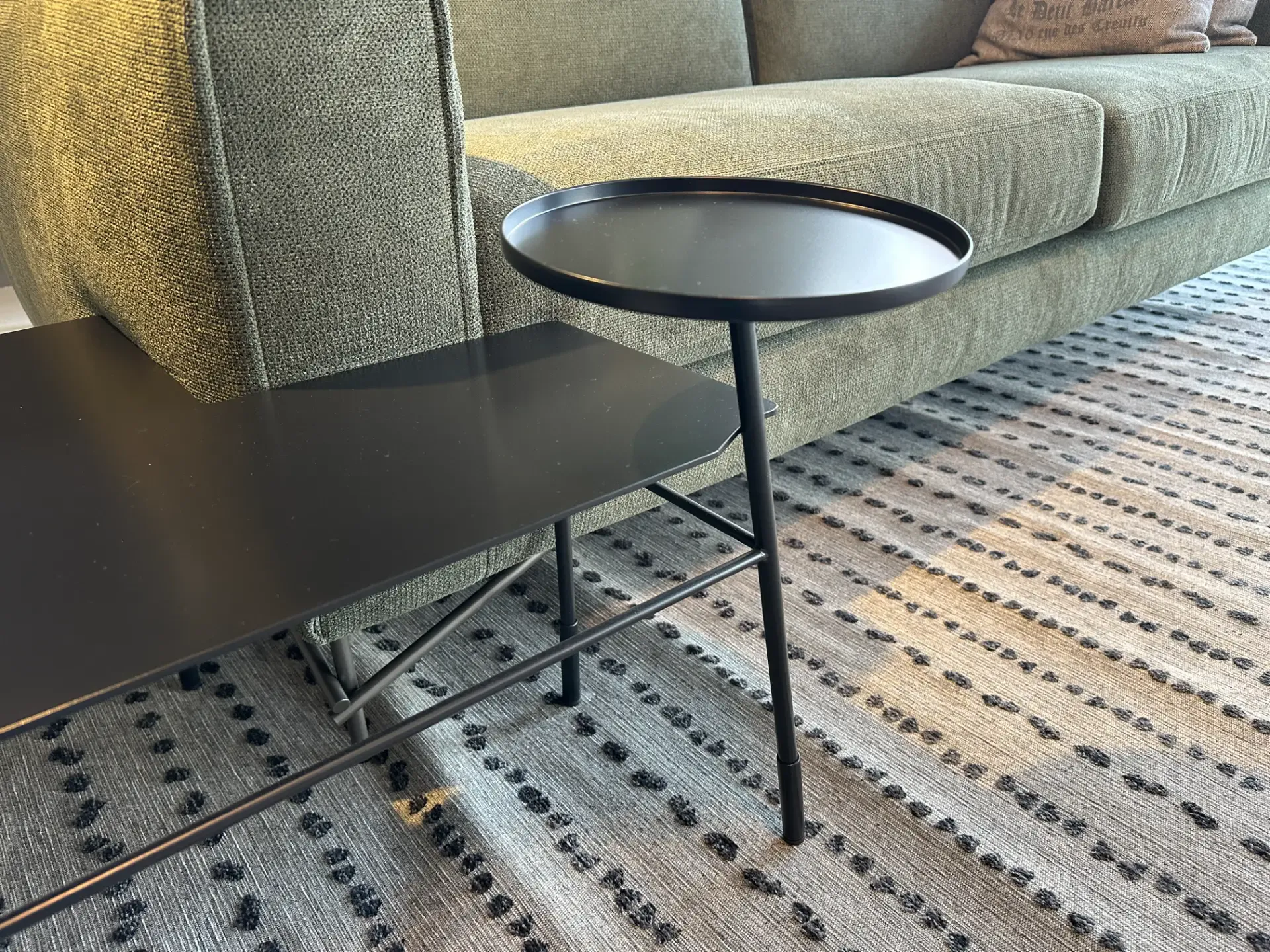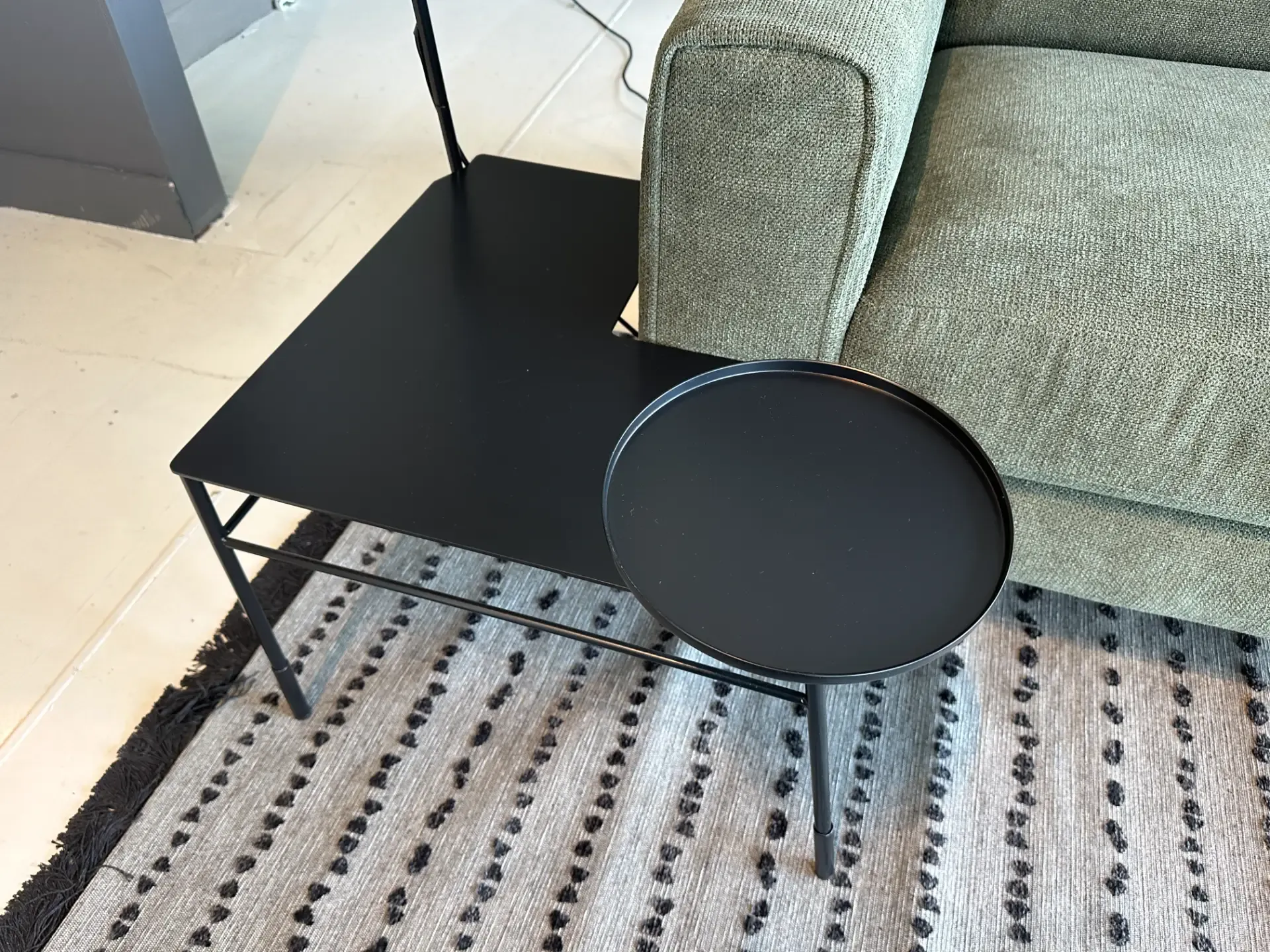 Dasè della collezione Mogg è un tavolino multifunzione dal design originale e contemporaneo, realizzato interamente in metallo nero satinato. Pensato per unire estetica e praticità, si distingue per la sua versatilità e per la capacità di adattarsi con naturalezza agli spazi del living.