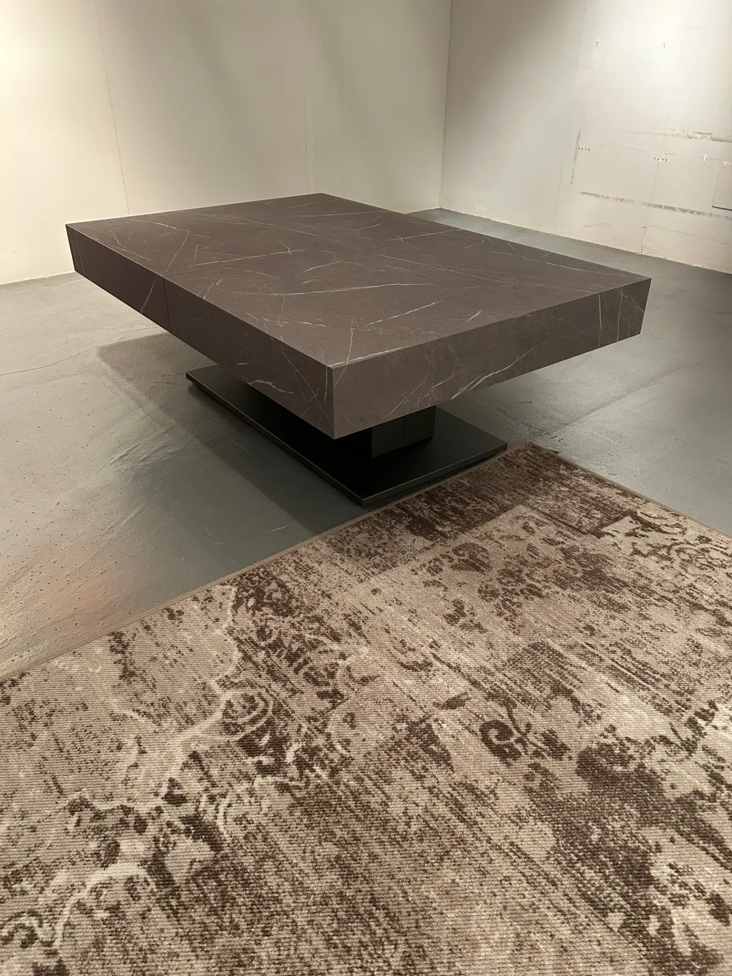 Tavolino trasformabile in tavolo da pranzo, dimensioni cm 120x80 allungabile a cm 220, 2 allunghe inserite nel piano ,dotato di rotelle per spostarlo facilmente, possibilità di alzarlo da cm 30 a cm 80 anche altezze intermedie.Realizzato in laminato alta resistenza nero con venature bianche .,