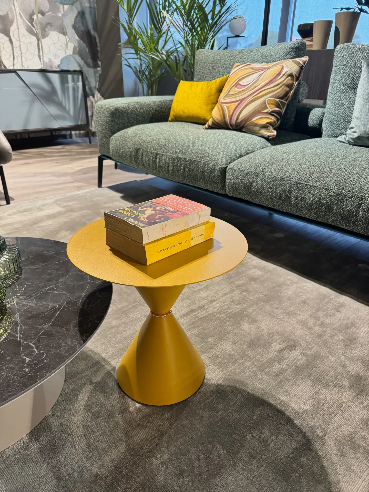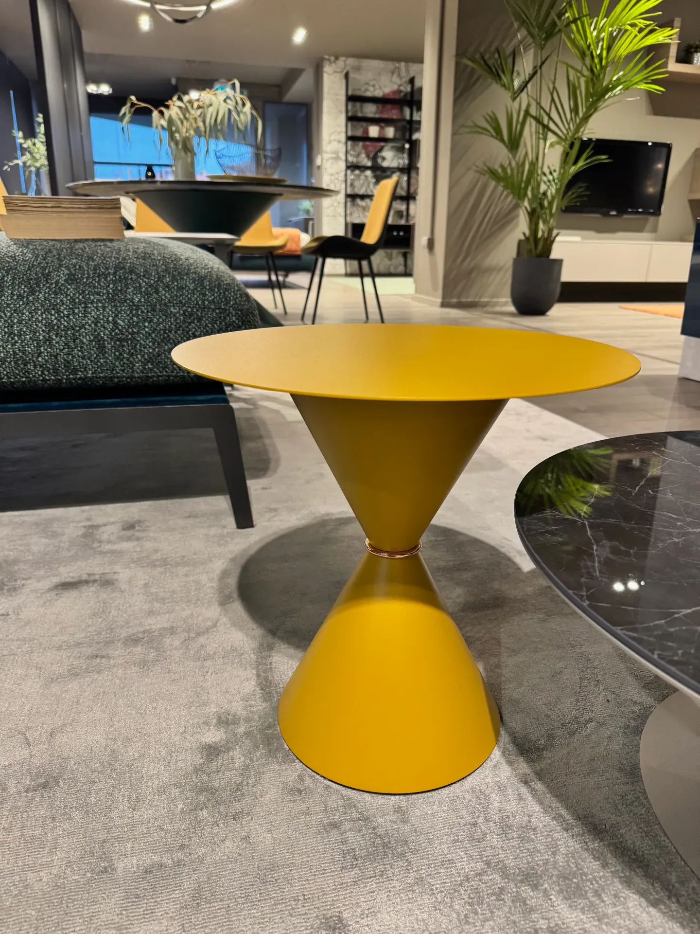 Coffee Table Clessidra di Midj in offerta a 417,00 euro. Tavolino con piano in metallo giallo ocra e struttura in metallo giallo ocra con l'anello di giunzione in metallo oro rosa. Questo tavolino di design si caratterizza per la sua forma ispirata alla clessidra, simbolo di equilibrio e fluidità. Tavolino che si adatta e si colloca in qualsiasi ambiente della casa, dalla zona giorno alla zona notte come comodino. Dimensioni: diametro 40, altezza 40 centimetri. Complemento di arredo che potrete vedere all'interno della nostra esposizione a Giussano, in provincia di Monza e Brianza, a pochi chilometri di distanza da Milano. Per qualsiasi informazione non esitate a contattarci.