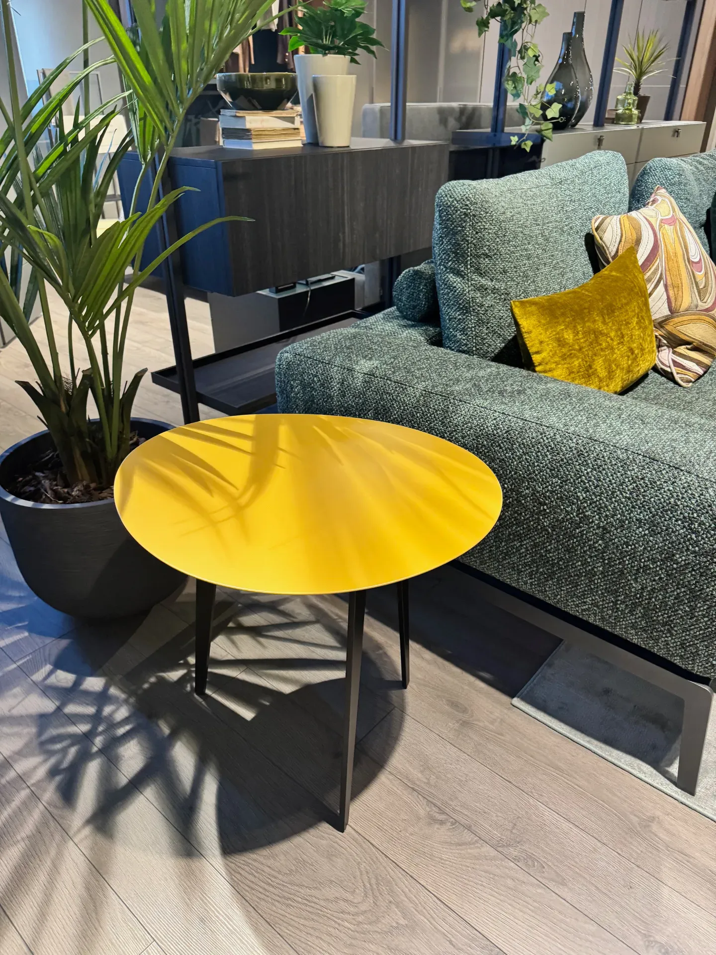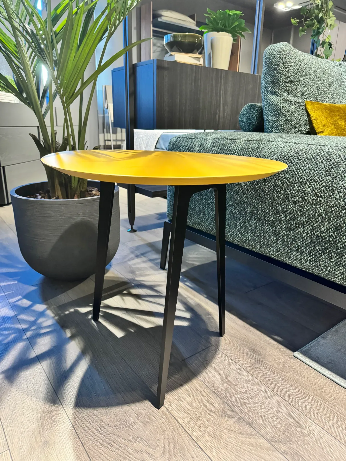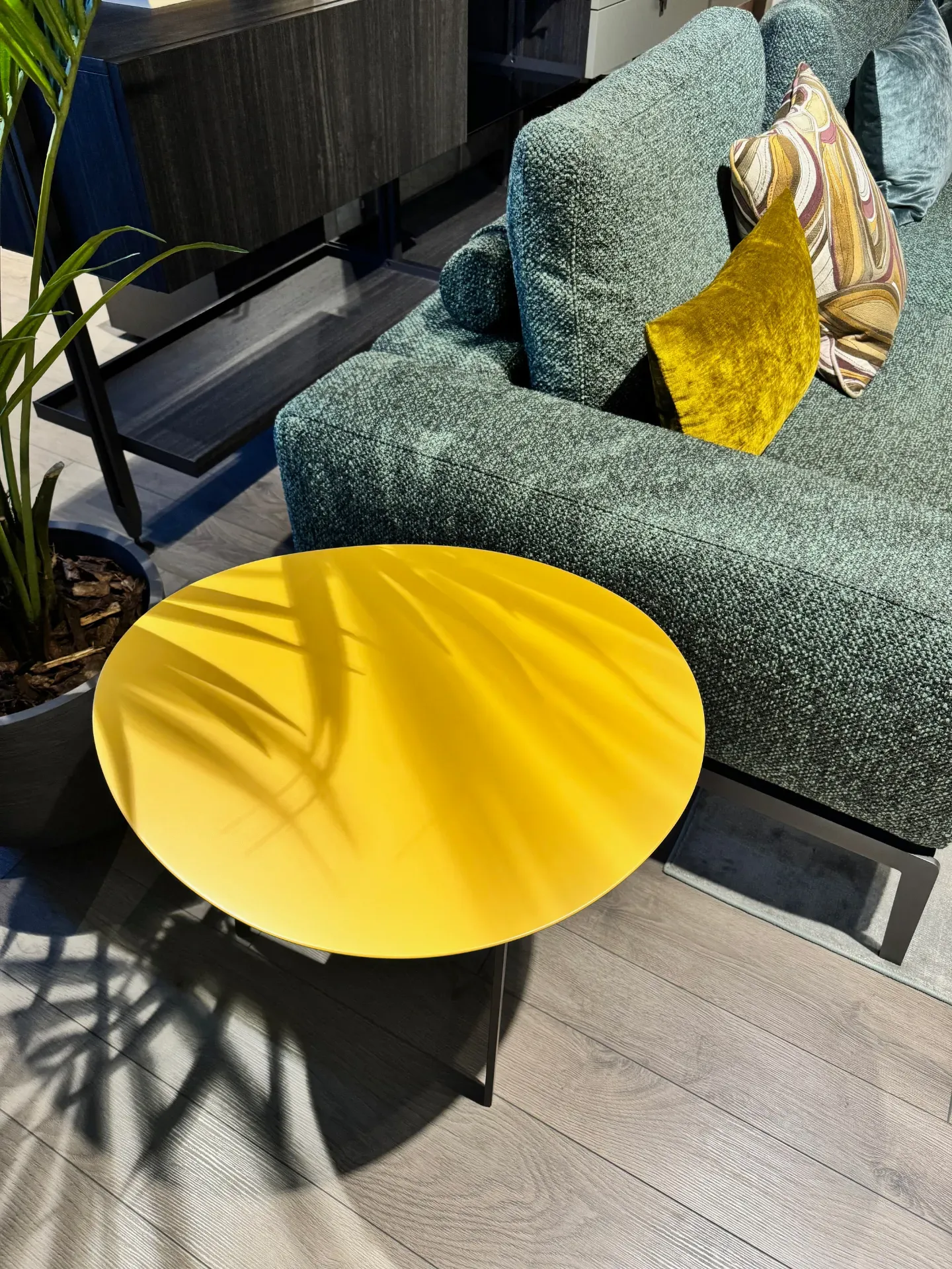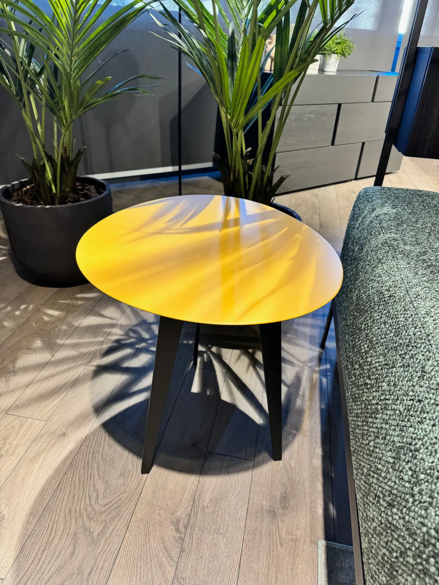 Tavolino di design modello Flowers di Lema, scontato a 580,00 euro. Tavolino con piano di forma ellittica lievemente irregolare laccato opaco ocra, appoggiato su una struttura a tre piedi in metallo verniciato nero. Il piano colorato, vivacizza e riscalda tutti gli ambienti della casa. Dimensioni: larghezza 60, profondità 51,1, altezza 55 centimetri. Complemento che potrete vedere all'interno della nostra esposizione a Giussano, in provincia di Monza e Brianza, a pochi chilometri di distanza da Milano. Per qualsiasi informazione non esitate a contattarci.