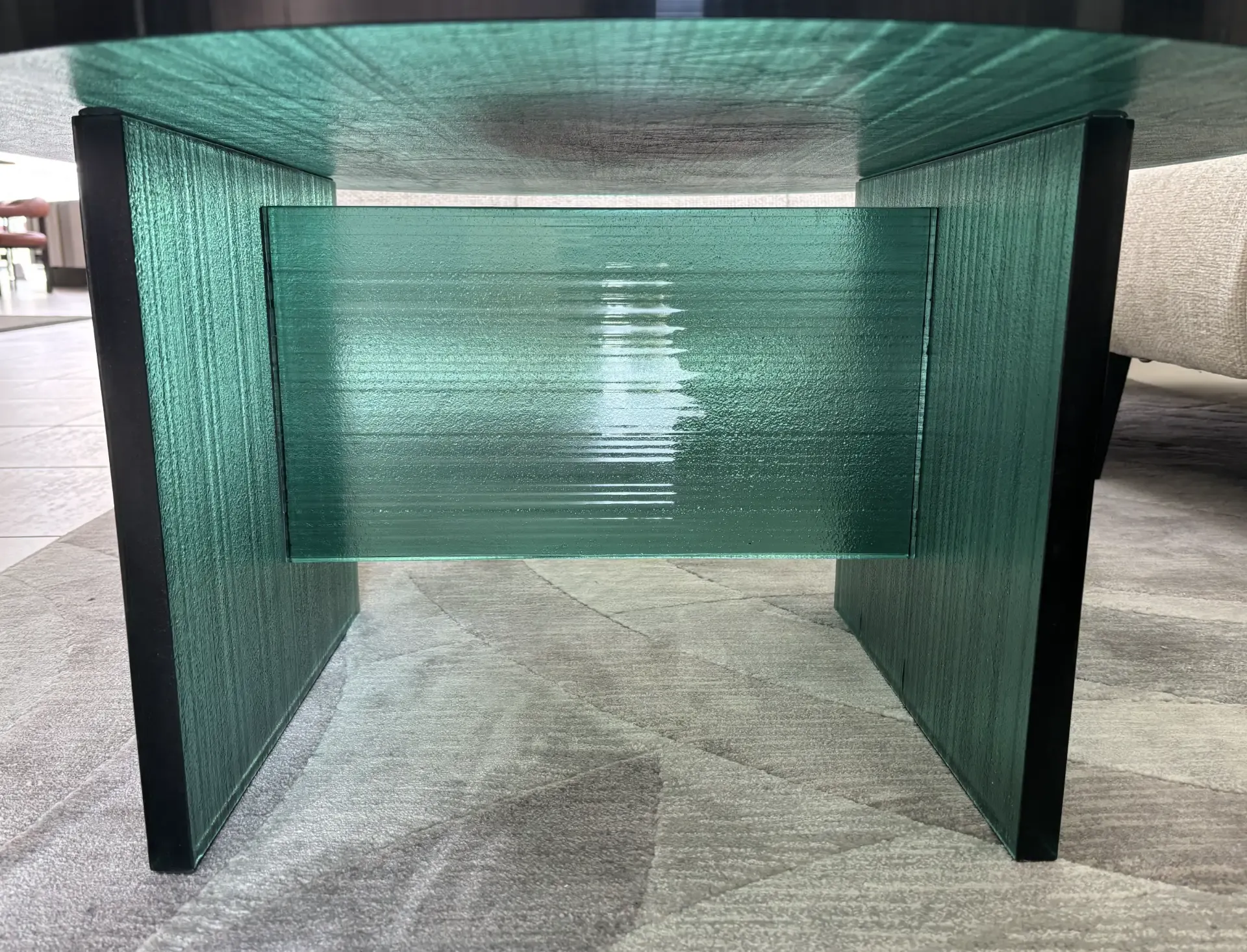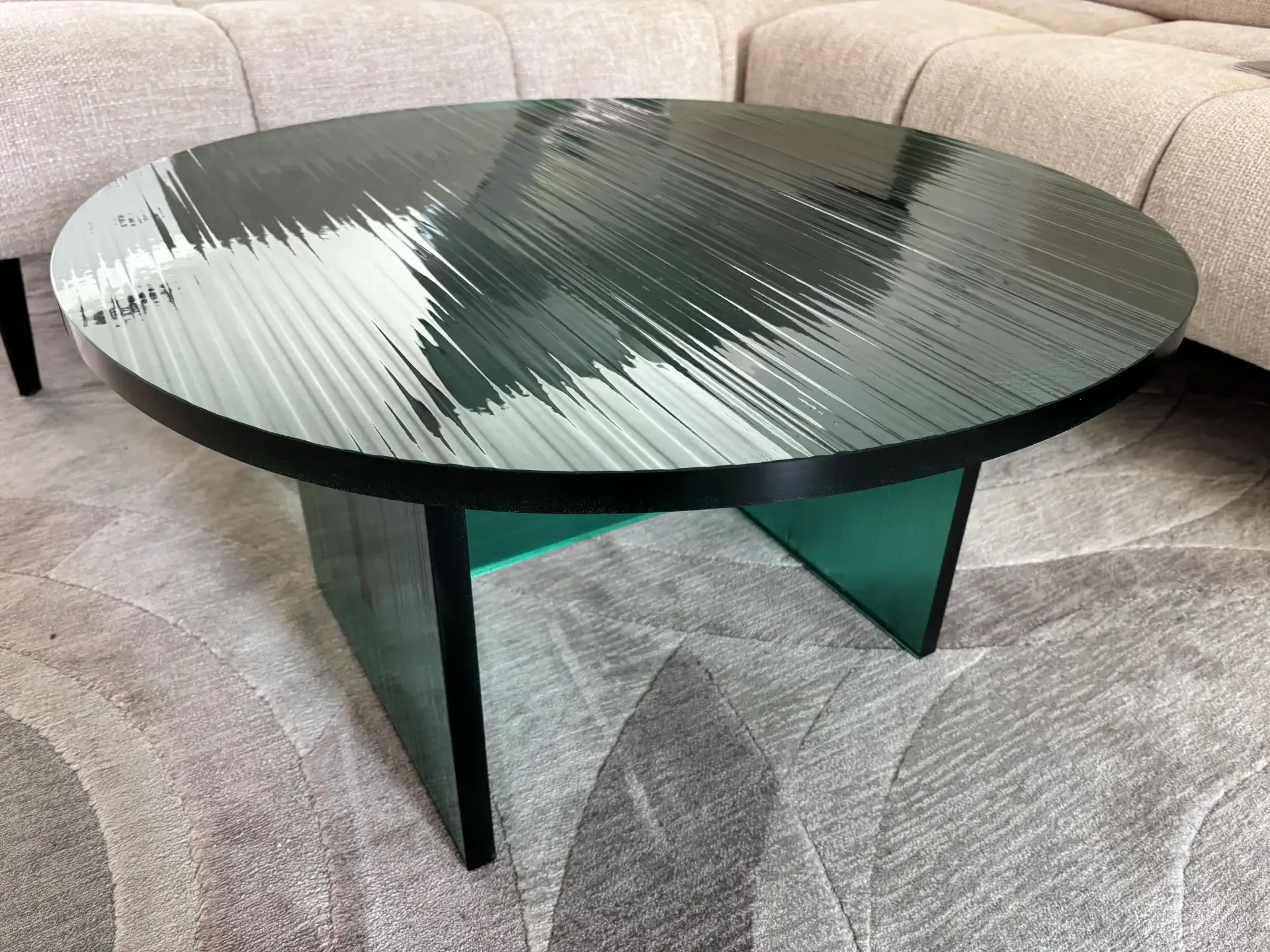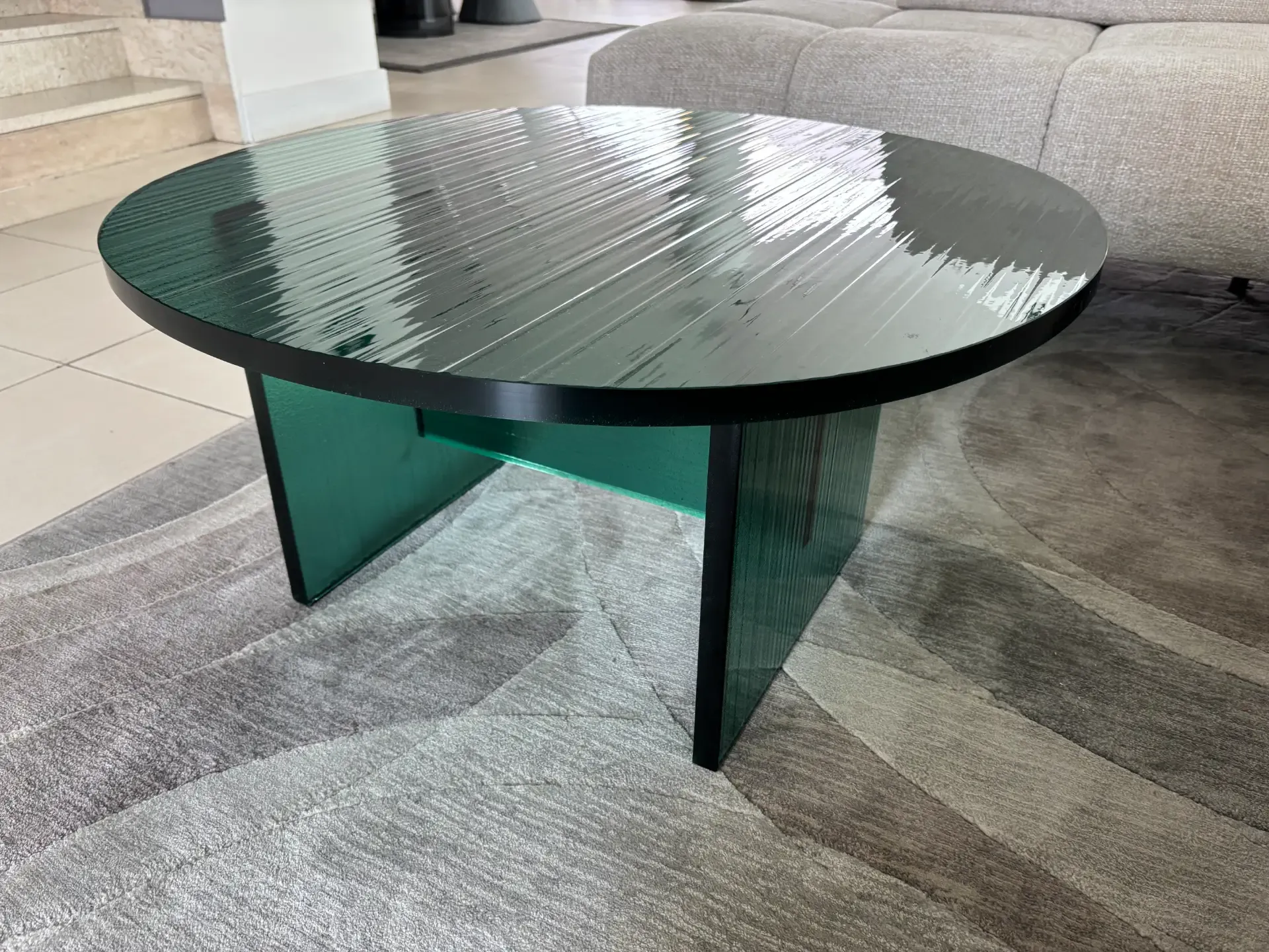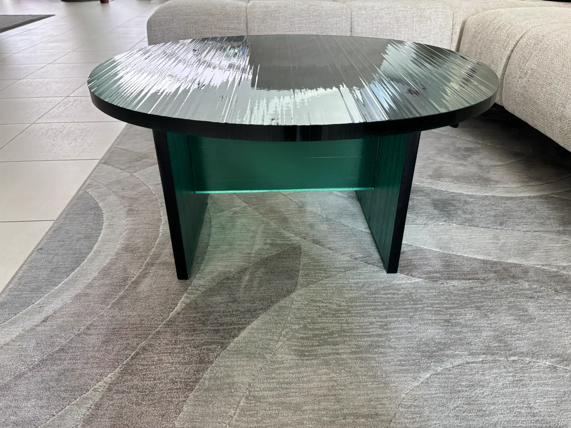 Supporto e piano in vetro col. verde.
