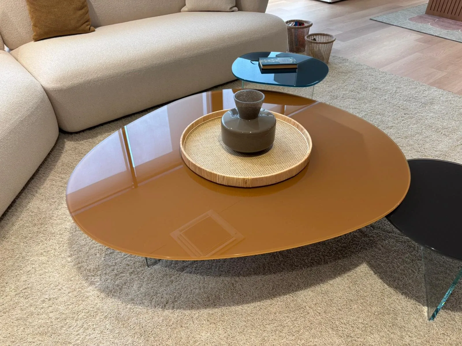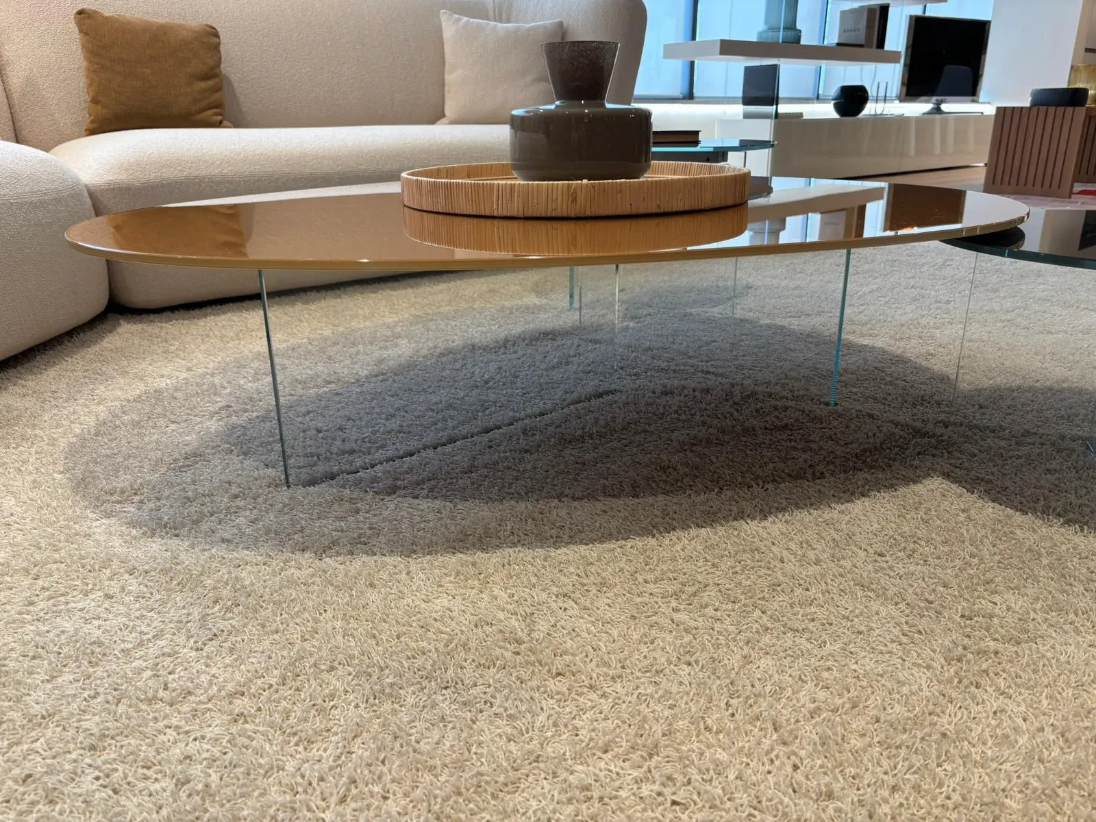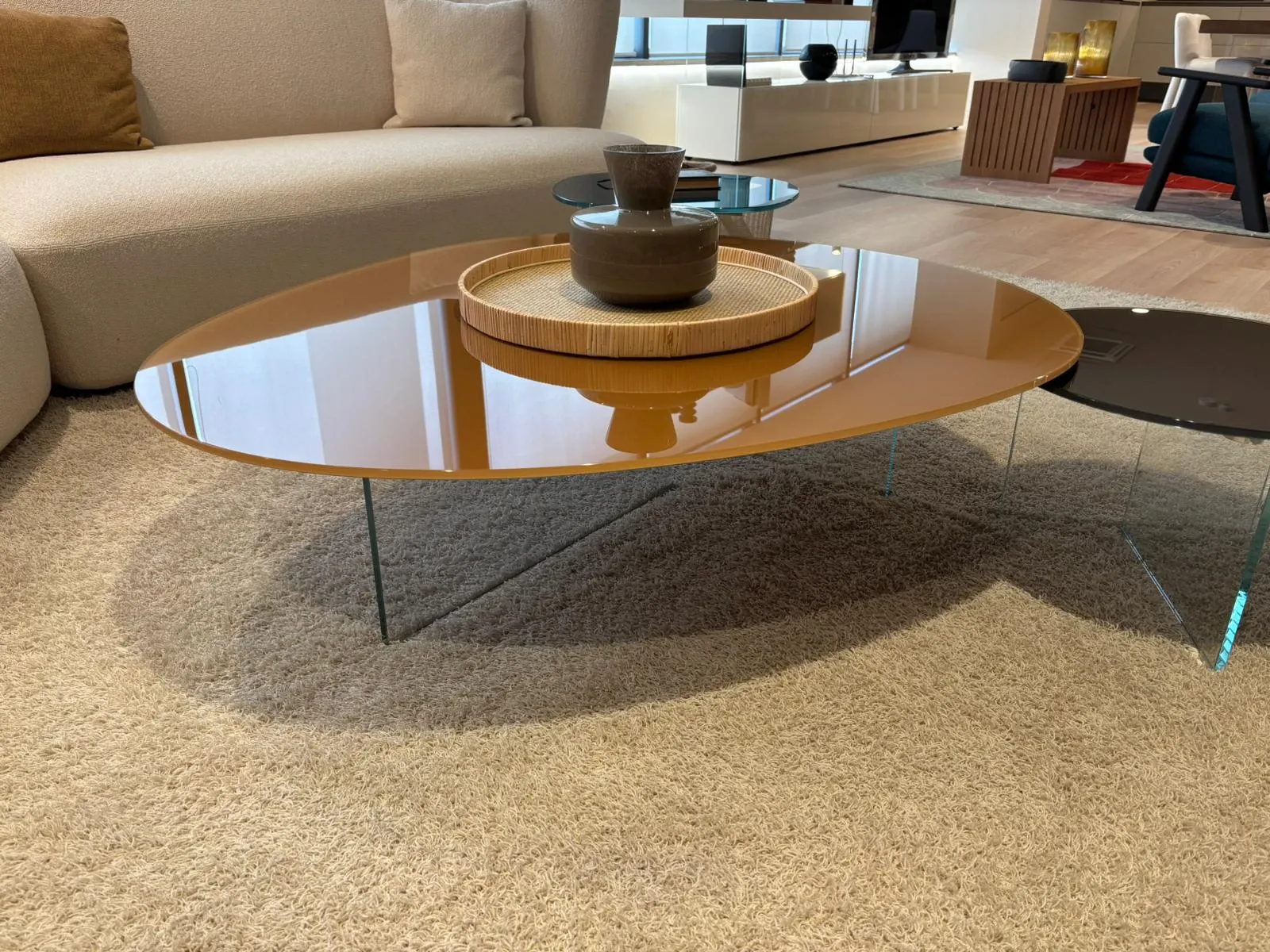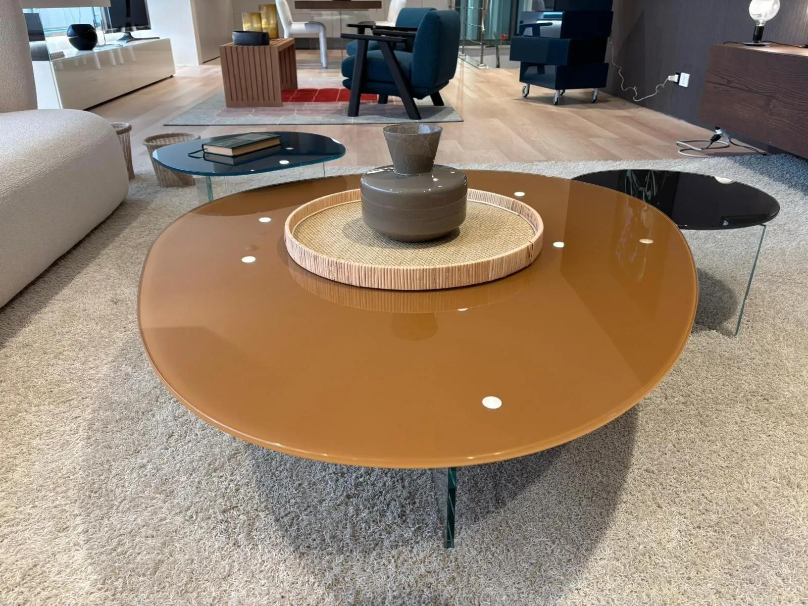 Lago, grazie a pluriennale esperienza e dedizione nel campo, sceglie solo i materiali altamente pregiati, o meglio quelli più adatti per realizzare la sua scelta quasi infinita di tavolini: il modello Pleasure 1417 nella fotografia è realizzato in vetro.