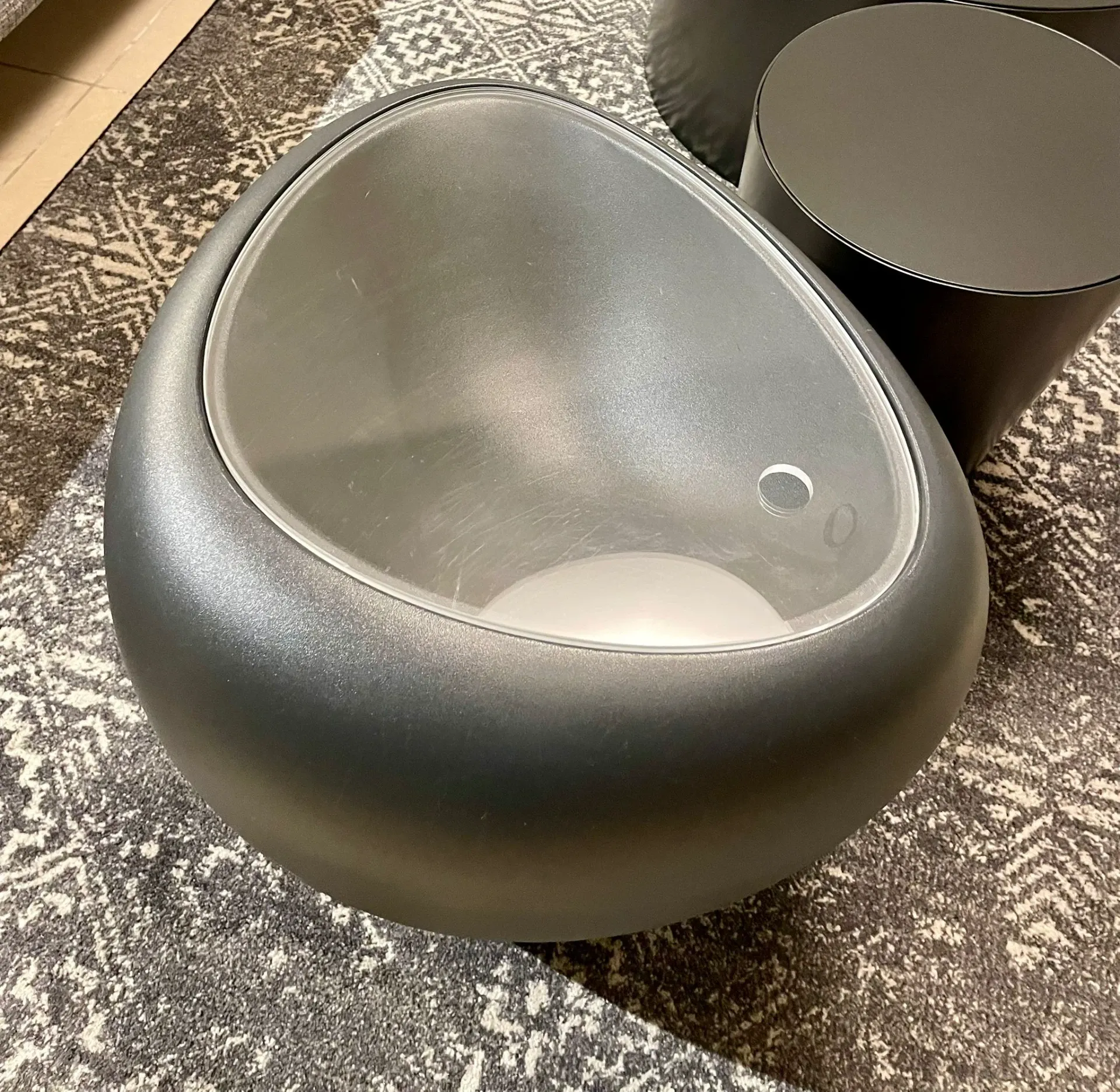 Servetto in polietilene con vano contenitore e top in plexiglass trasparente.