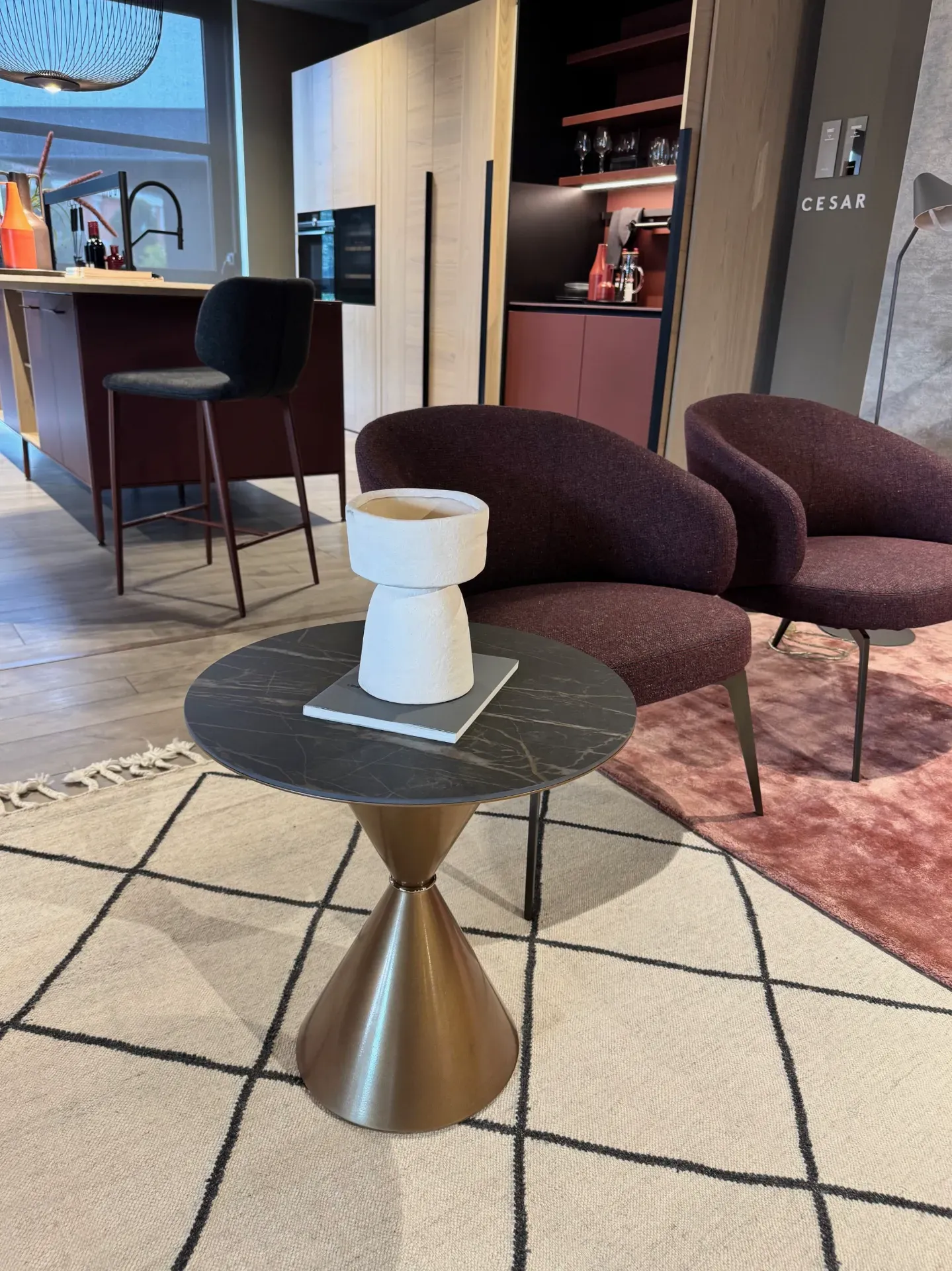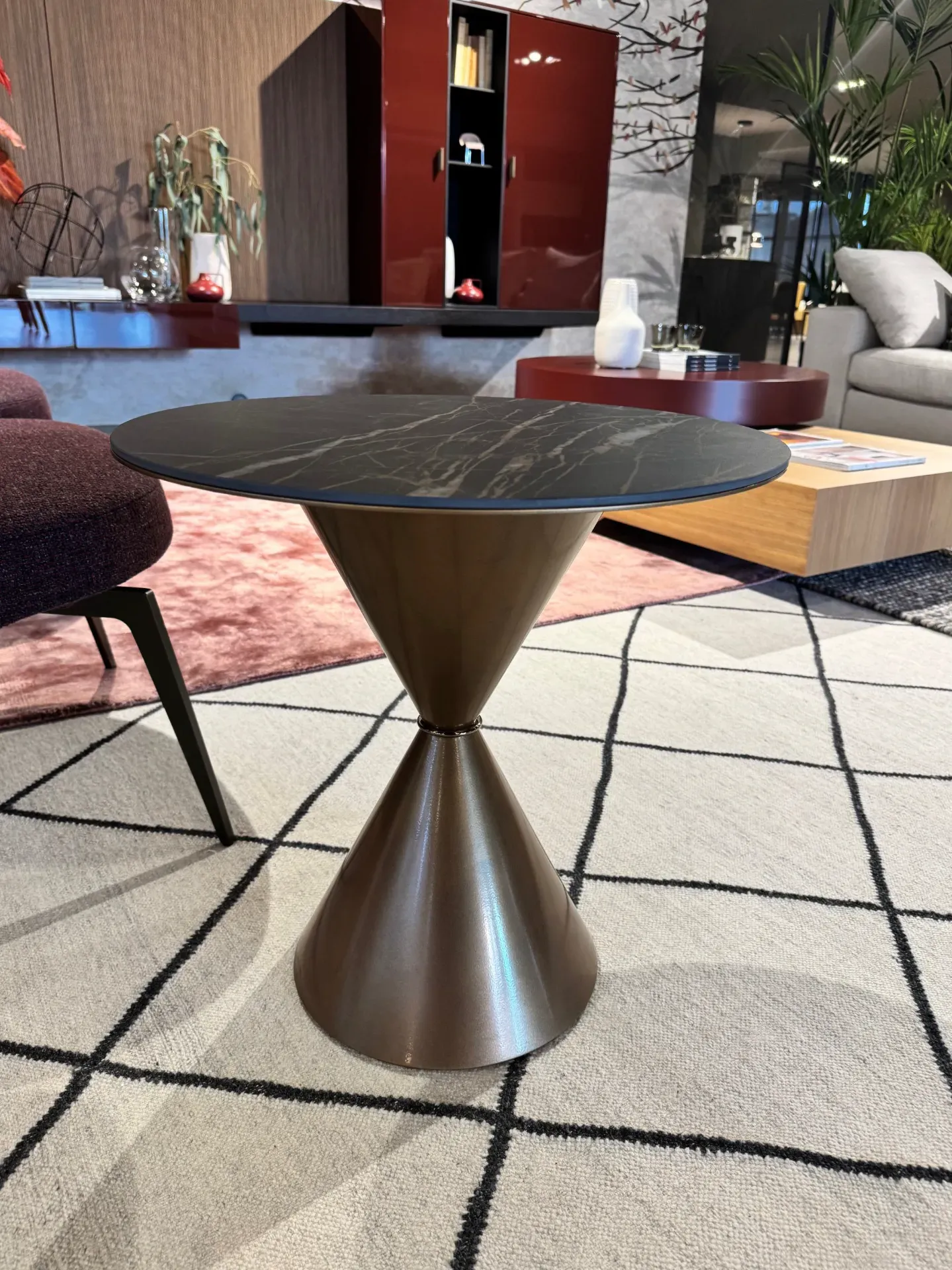 Coffee Table Clessidra di Midj in offerta a 500,00 euro. Tavolino con piano in cristalceramica noir desir opaco e struttura in metallo verniciato bronzo con l'anello di giunzione in metallo bronzo dorato. Questo tavolino di design si caratterizza per la sua forma ispirata alla clessidra, simbolo di equilibrio e fluidità. Tavolino che si adatta e si colloca in qualsiasi ambiente della casa, dalla zona giorno alla zona notte come comodino. Dimensioni: diametro 50, altezza 50 centimetri. Complemento di arredo che potrete vedere all'interno della nostra esposizione a Giussano, in provincia di Monza e Brianza, a pochi chilometri di distanza da Milano. Per qualsiasi informazione non esitate a contattarci.