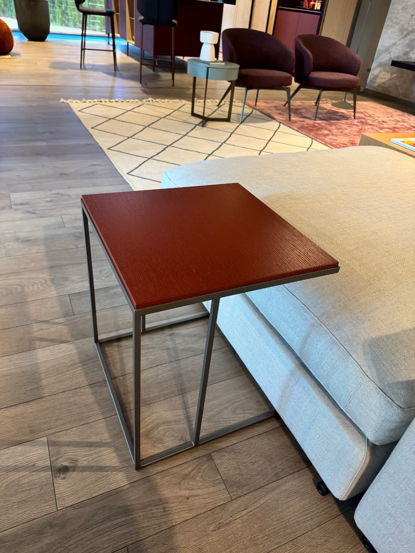 Tavolino modello Handy Kobe di Alf Da Frè scontato a 234,00 euro. Tavolino da divano quadrato con struttura in metallo verniciato moka shine e piano in legno rovere laccato opaco amaranto. Coffe table estremamente pulito nella linea. Misure tavolino: larghezza e profondità 45 cm, altezza 50 cm. Complemento di arredo che potrete vedere nella nostra esposizione a Giussano, in provincia di Monza e Brianza a pochi chilometri di distanza da Milano. Per qualsiasi informazione non esitate a contattarci.