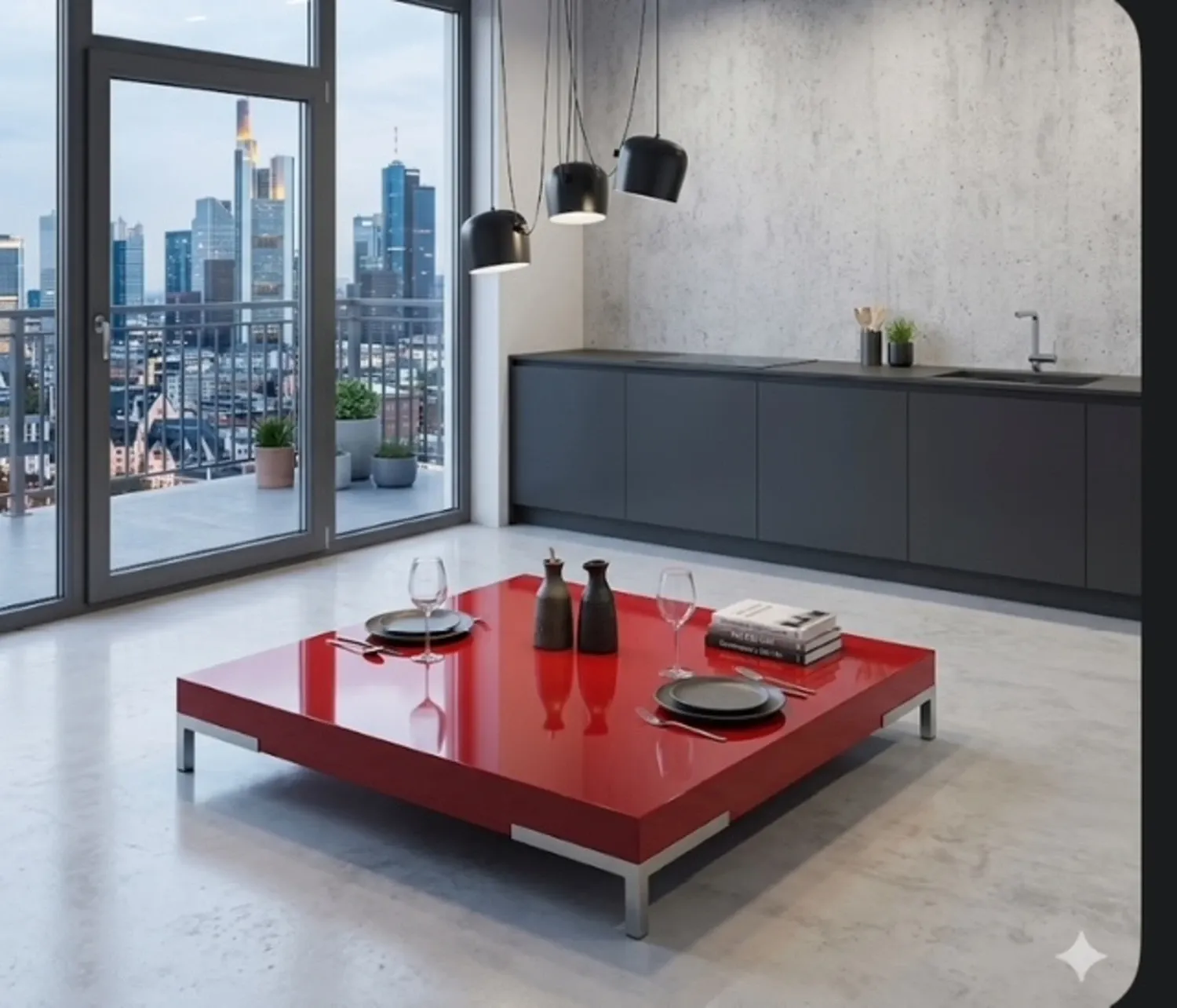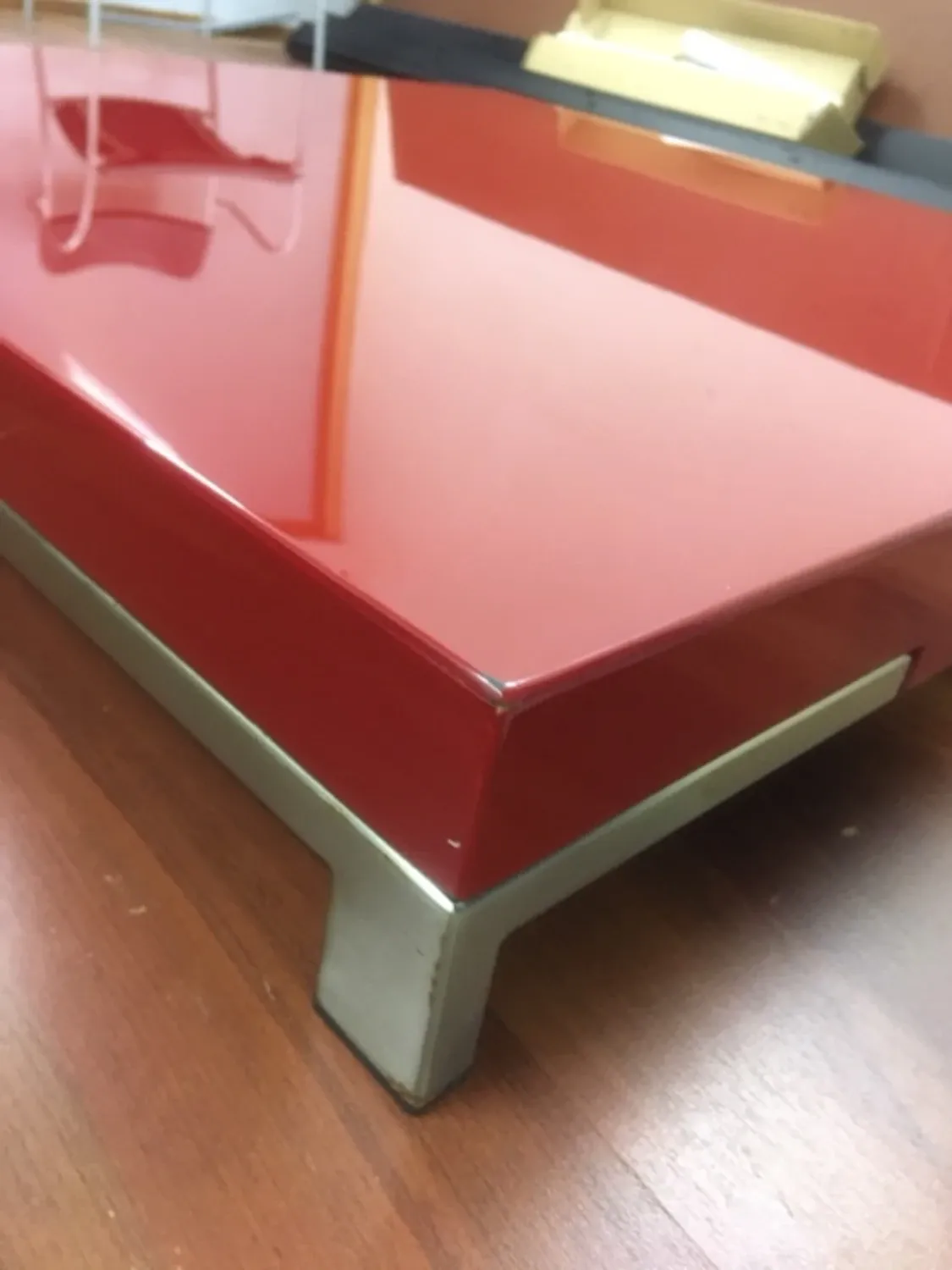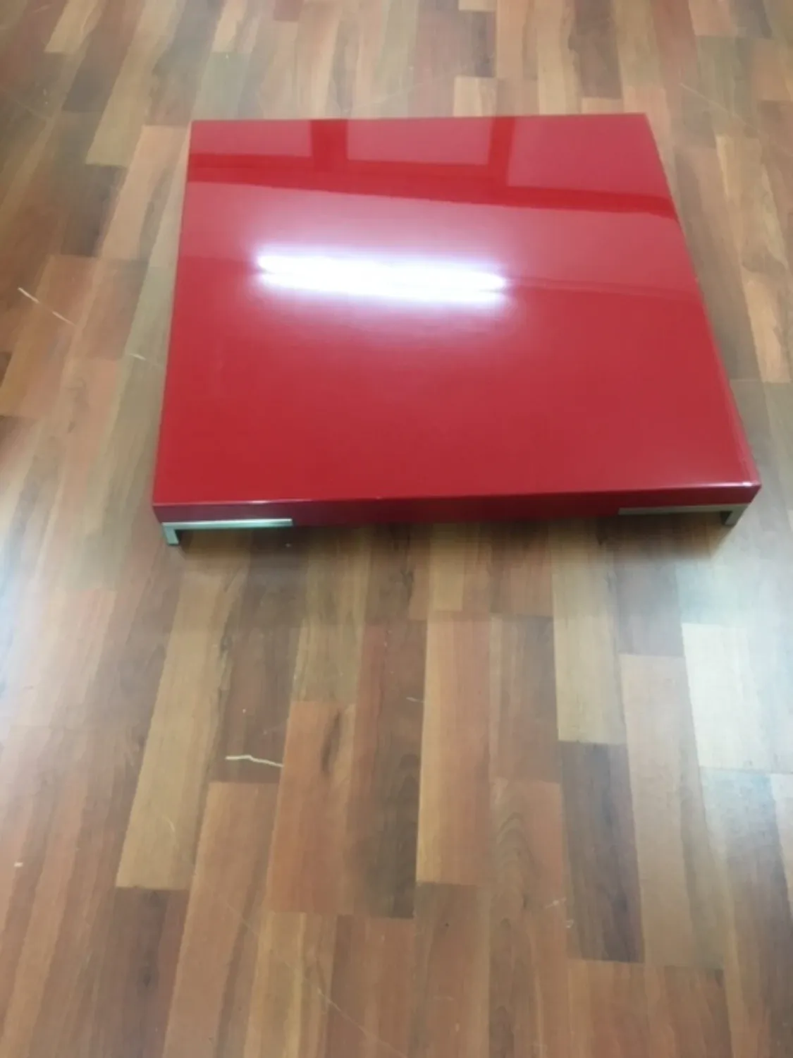 tamburato impiallacciato in tranciato precomposto rosso lucido.