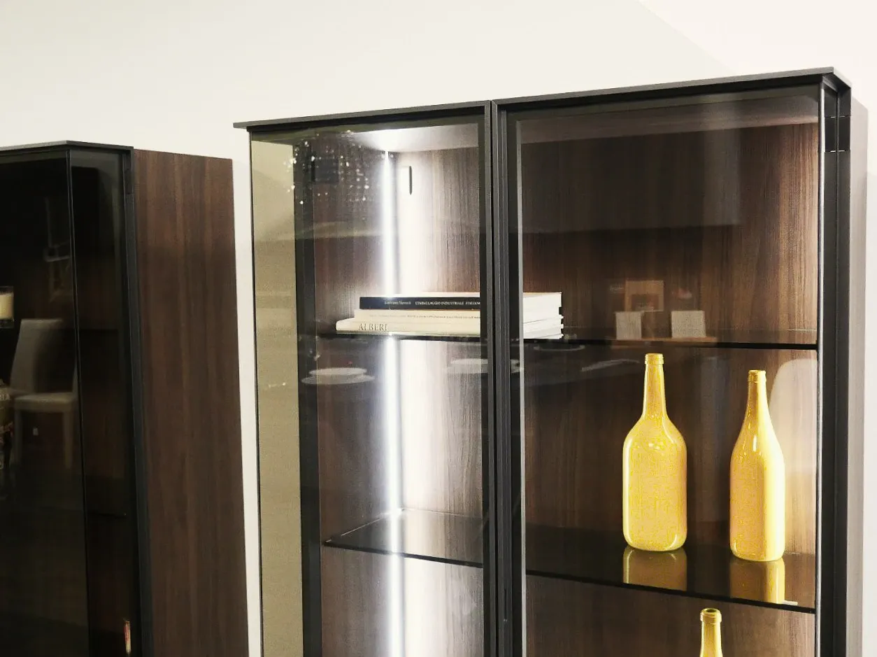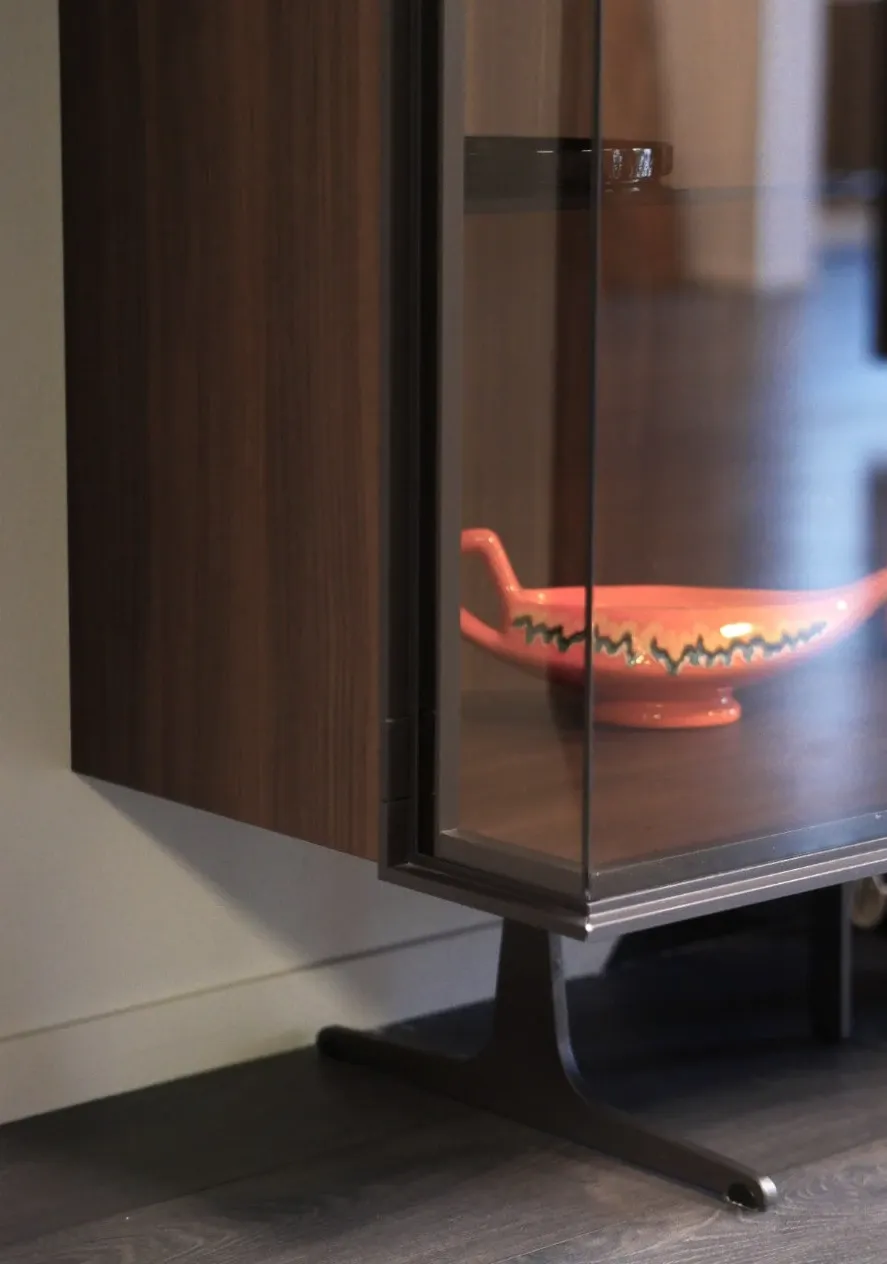 Questa proposta è in grado di trasformare un interno anonimo in uno spazio accogliente: ottimizza la tua abitazione con questa vetrina con ante in vetro brunito, Teka di Orme.